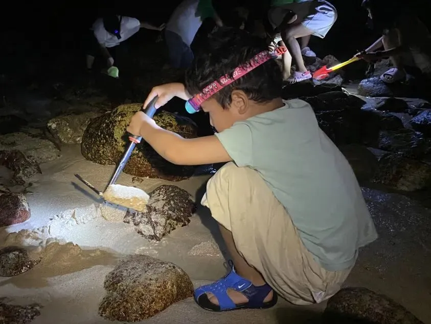 等待着夜晚退潮,领队带大家前往海货最多的礁石段,带上你的钳子和手电,将大海的味道直接带回锅里。