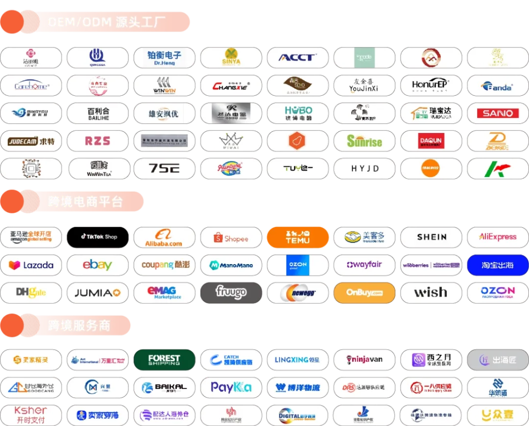 B2B平台、B2C平台、海内外零售电商、国内外主流电商平台、独立站、MCN机构等