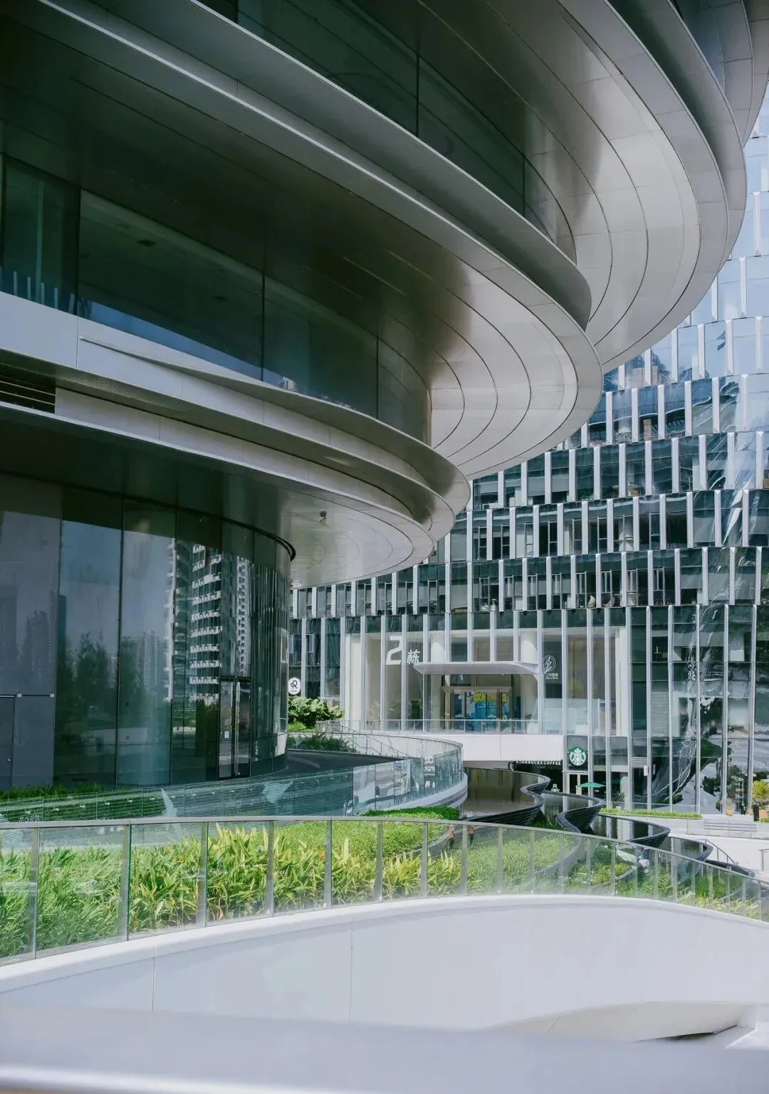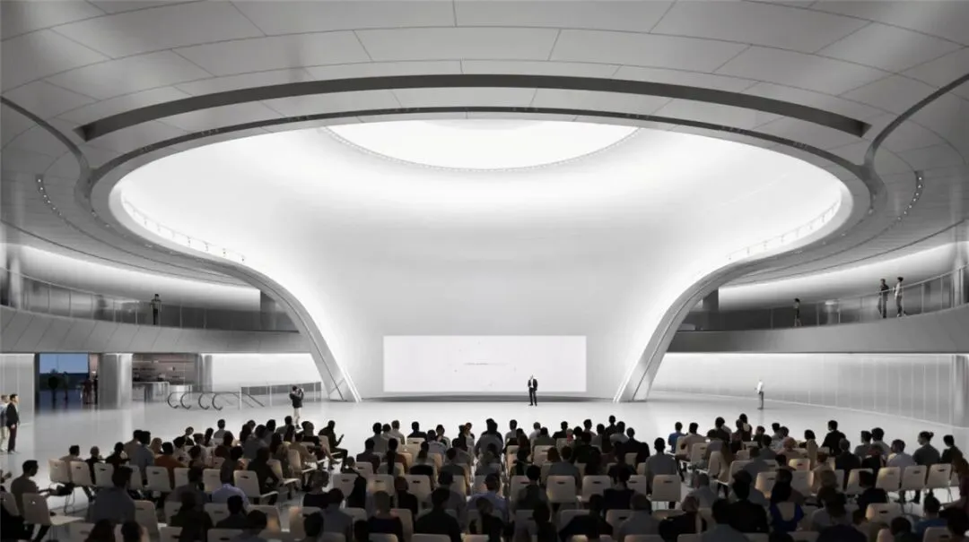 项目总投资318.9亿元,开发规模约200万平方米,涵盖研发用房、宿舍、商业酒店等设施,预计容纳7.5万人办公。由四座螺旋攀升的塔楼组成,象征高速运转的未来科技力量。园区无围墙设计,与城市公园无缝衔接,植物覆盖率超40%,吸引鸟类栖息,践行“科技向善”理念。