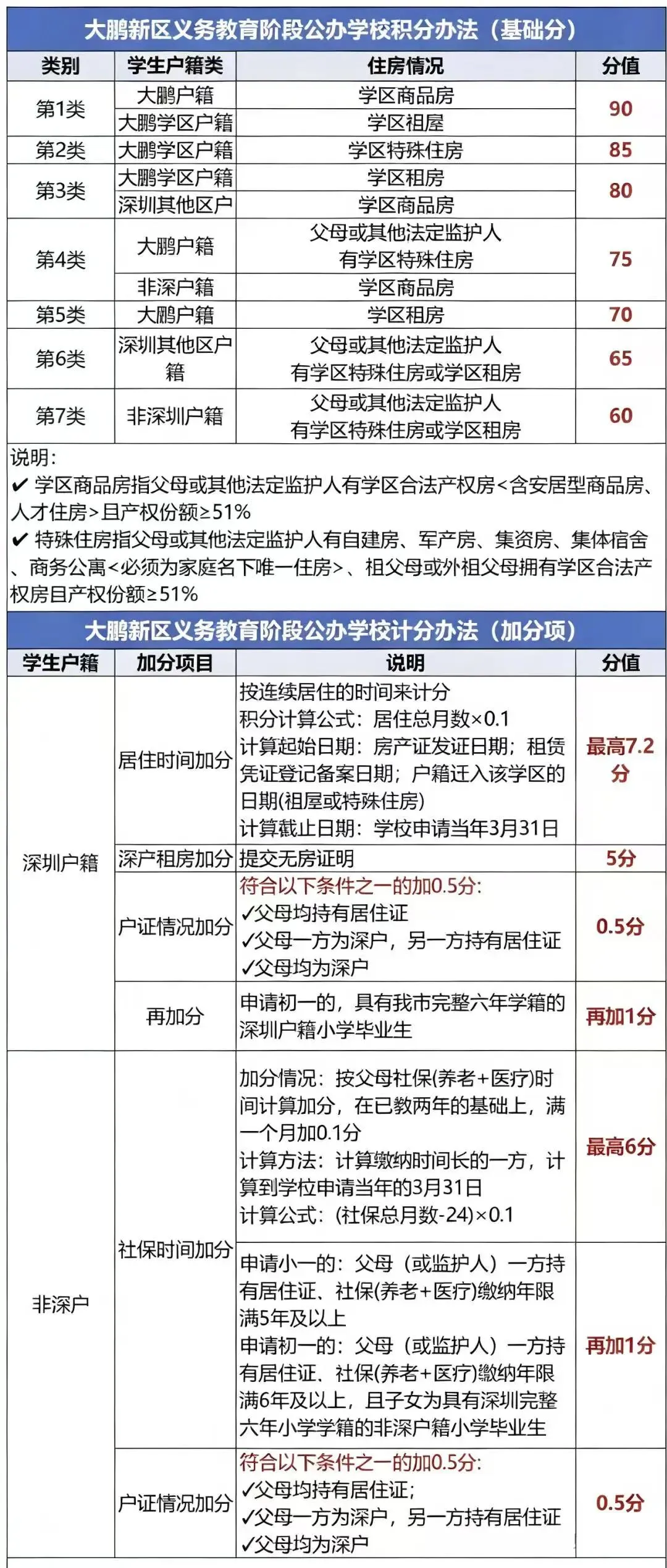 · 小升初有深圳完整 6 年学籍加 1 分,住得越久、社保越久,分越高