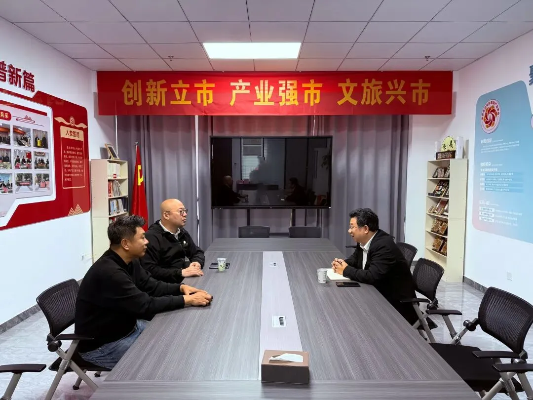 2026年4月13日上午,深圳福美投资有限公司张善明一行再次到访安庆市文化和旅游产业协会,与会长张景龙、秘书长潘君举行工作座谈。双方围绕AIGC课程开发、科技研学场景打造、文创门票数字化升级等前沿议题进行深度交流,并就推动具体合作项目在安庆落地达成重要共识。