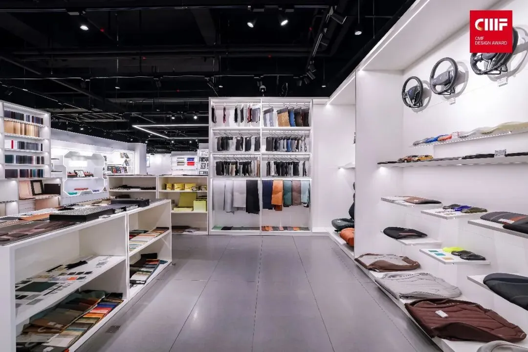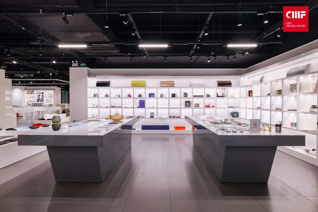 该CMF展览馆总面积达1200平方米,采用开放式布局,设有五大核心功能分区,目前已汇集近万种材料与工艺样本。