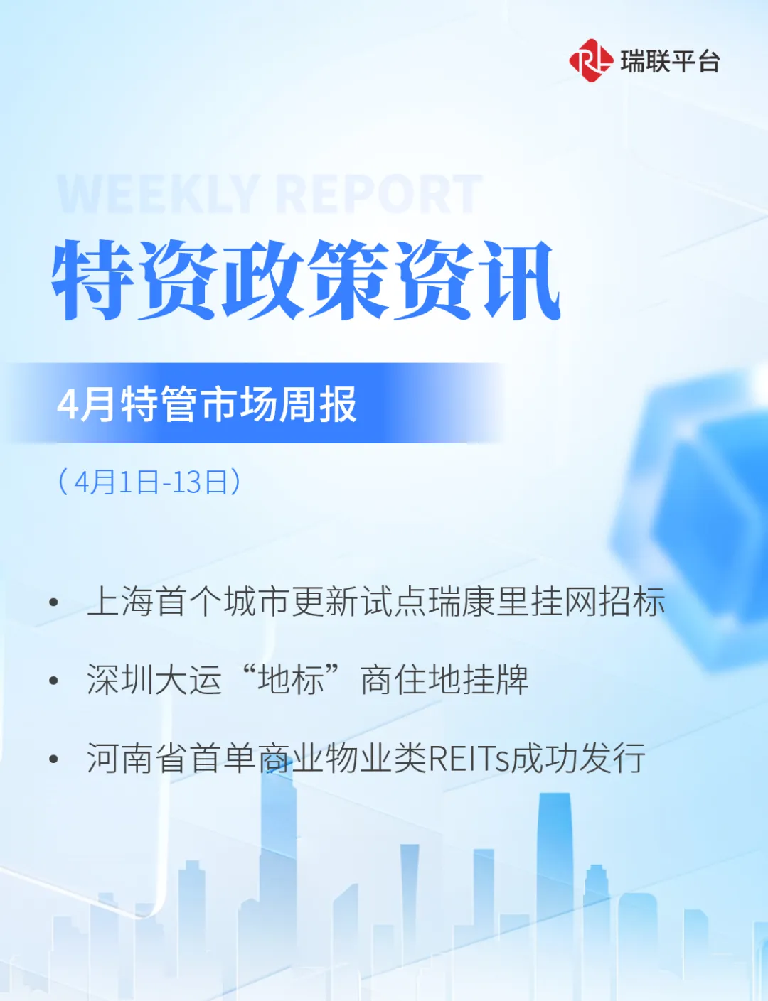 上海瑞康里40亿招标,深圳“地标”地块70.45亿挂牌,河南首单商业物业类REITs发行(4月1日-13日)