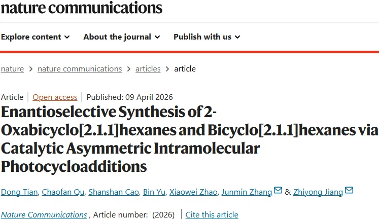 深圳大学江智勇/张俊民Nature子刊 | 不对称催化分子内光环加成:对映选择性合成两类双环 [2.1.1] 己烷!