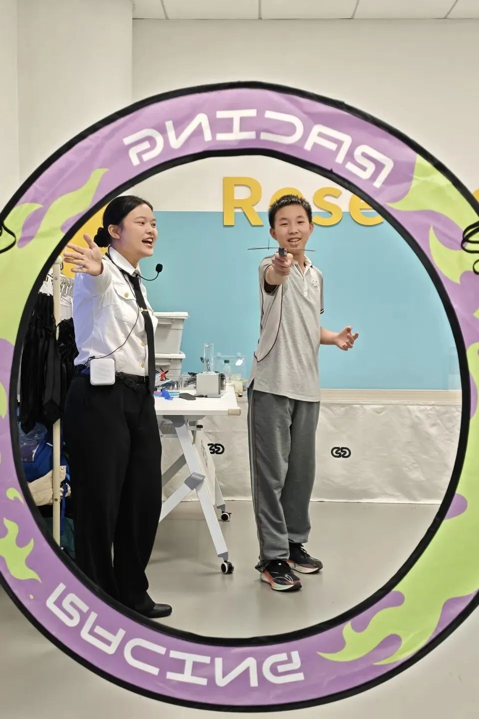 瞧,孩子们全神贯注,遥控着它灵活地飞跃一个个精心设置的障碍,每一次成功穿越,都让孩子们欢呼雀跃,真切感受科技带来的震撼与快乐。