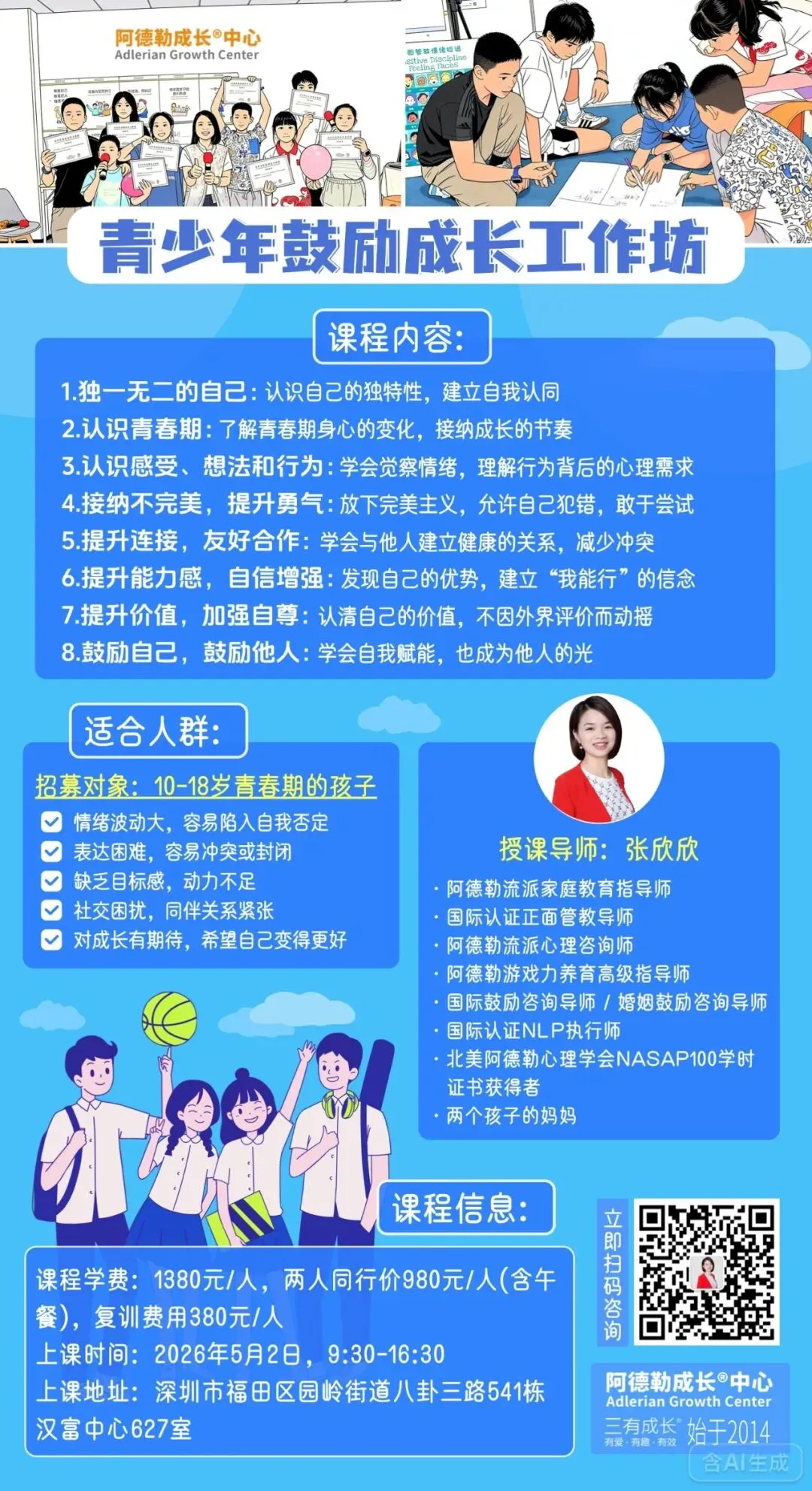 招募对象:10-18岁的青少年,如果你的孩子有以下情况,这门课就是为他/她准备的:😞情绪波动大,容易陷入自我否定