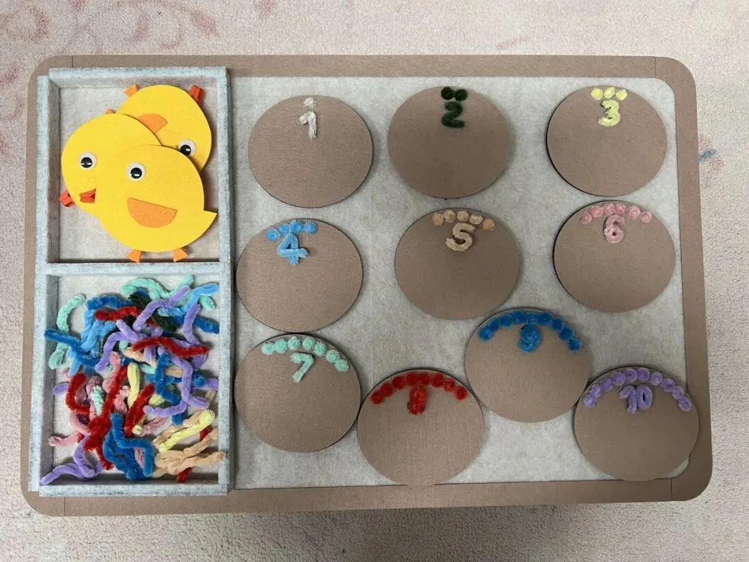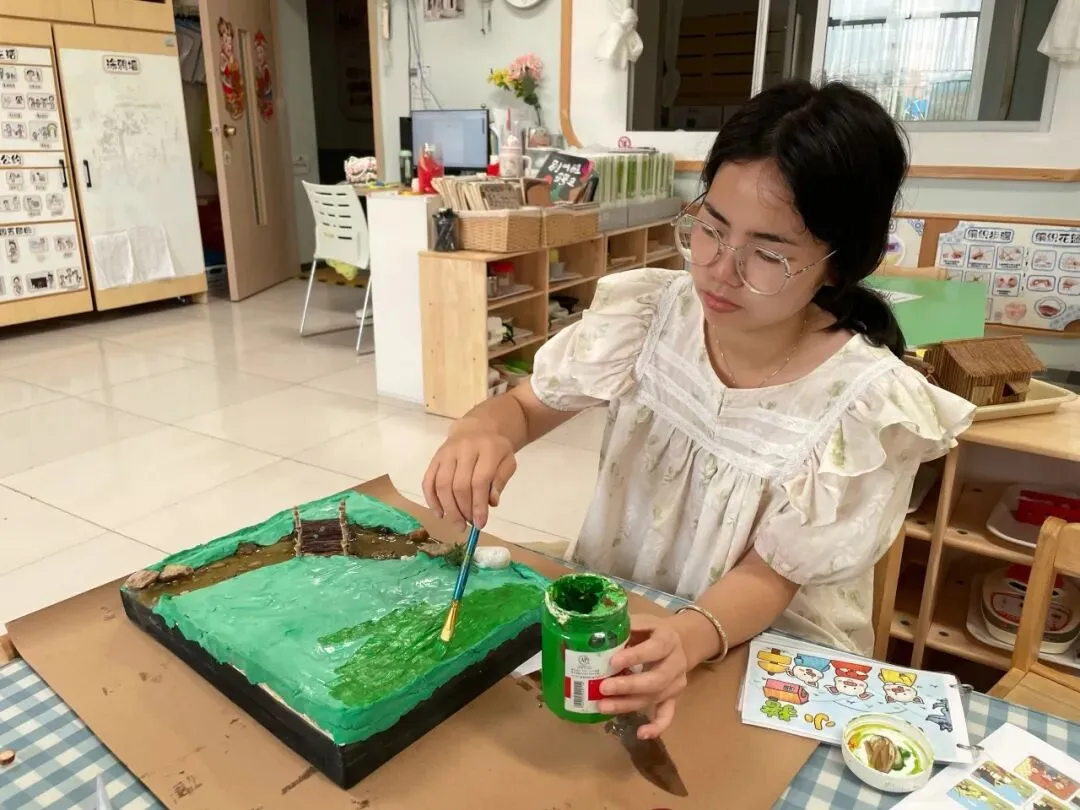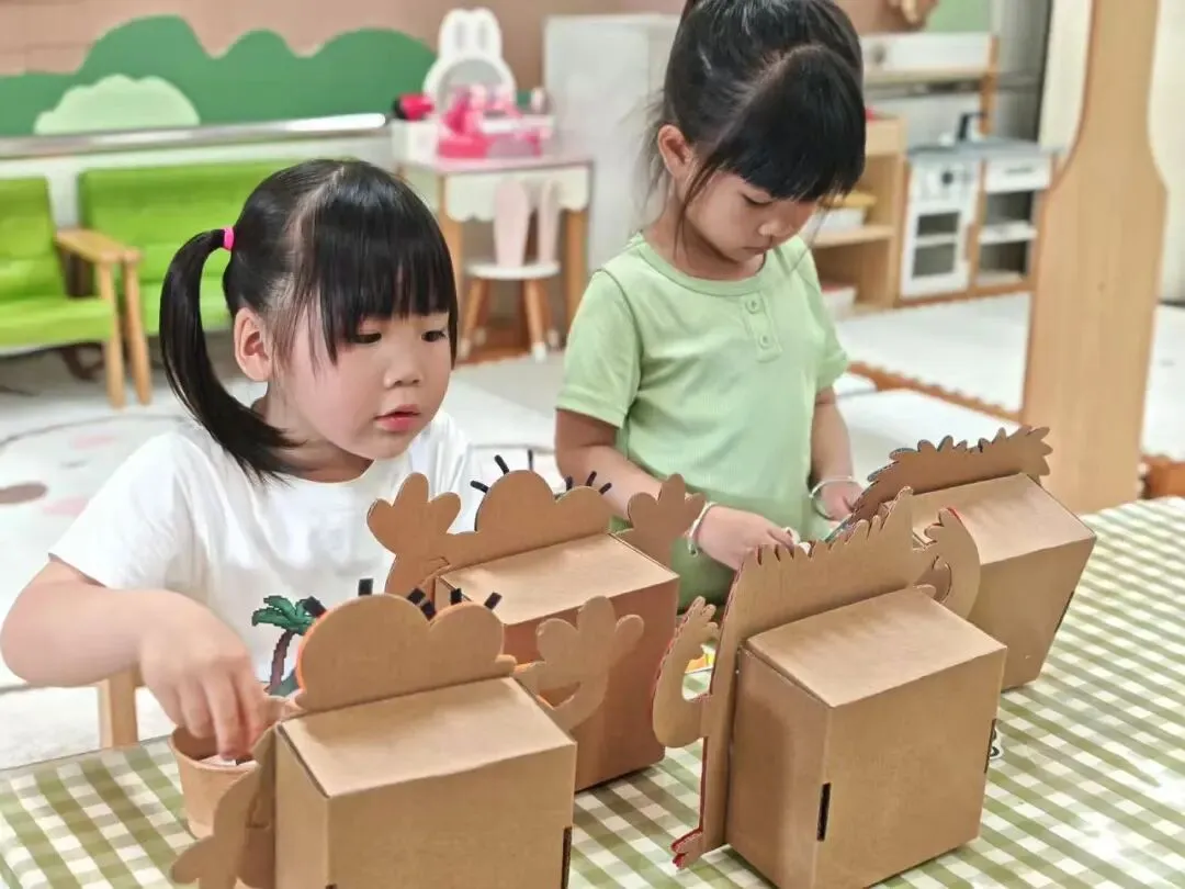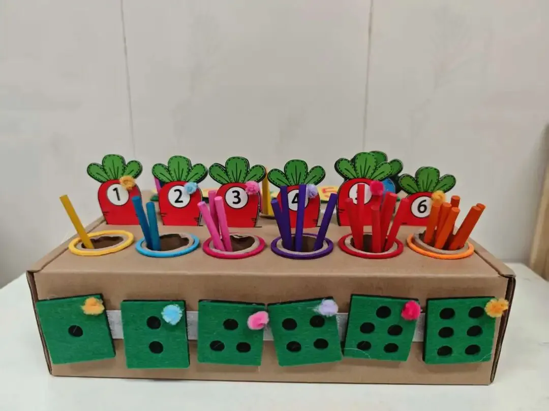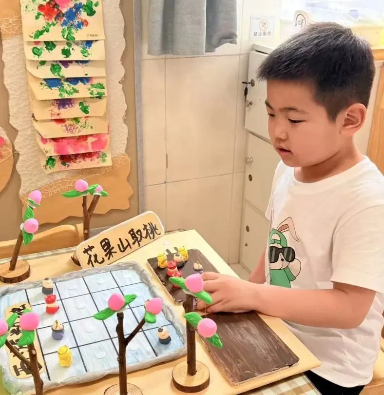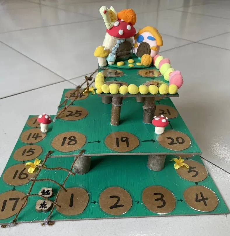 每一件教玩具的诞生,都经历了从设计构思到反复打磨的过程。老师们立足幼儿年龄特点、兴趣需求,利用低结构材料精心创作。从构思、选材、裁剪、粘贴到反复调试,每一步都倾注心血,将教育目标融入细节,让普通材料变身富有教育价值的区域材料。