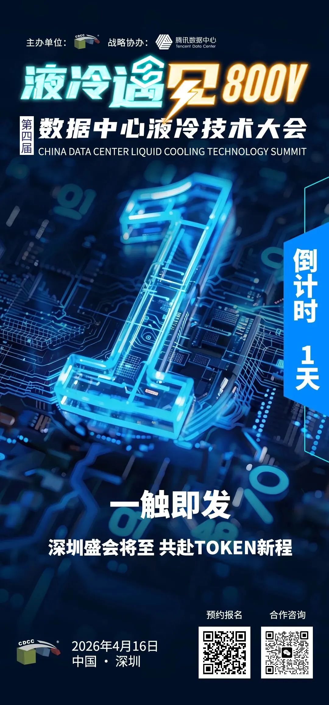 2026年4月16日,由CDCC主办、腾讯数据中心战略协办的第四届数据中心液冷技术大会将在深圳盛大召开。作为首个落地深圳的数据中心液冷大型技术峰会,本届大会紧扣时代脉搏,以 “液冷遇见800V” 为主题,汇聚行业顶尖智慧,深入探讨液冷技术与800V HVDC如何携手重新定义面向未来的AI数据中心,为产业的可持续发展注入全新动能。