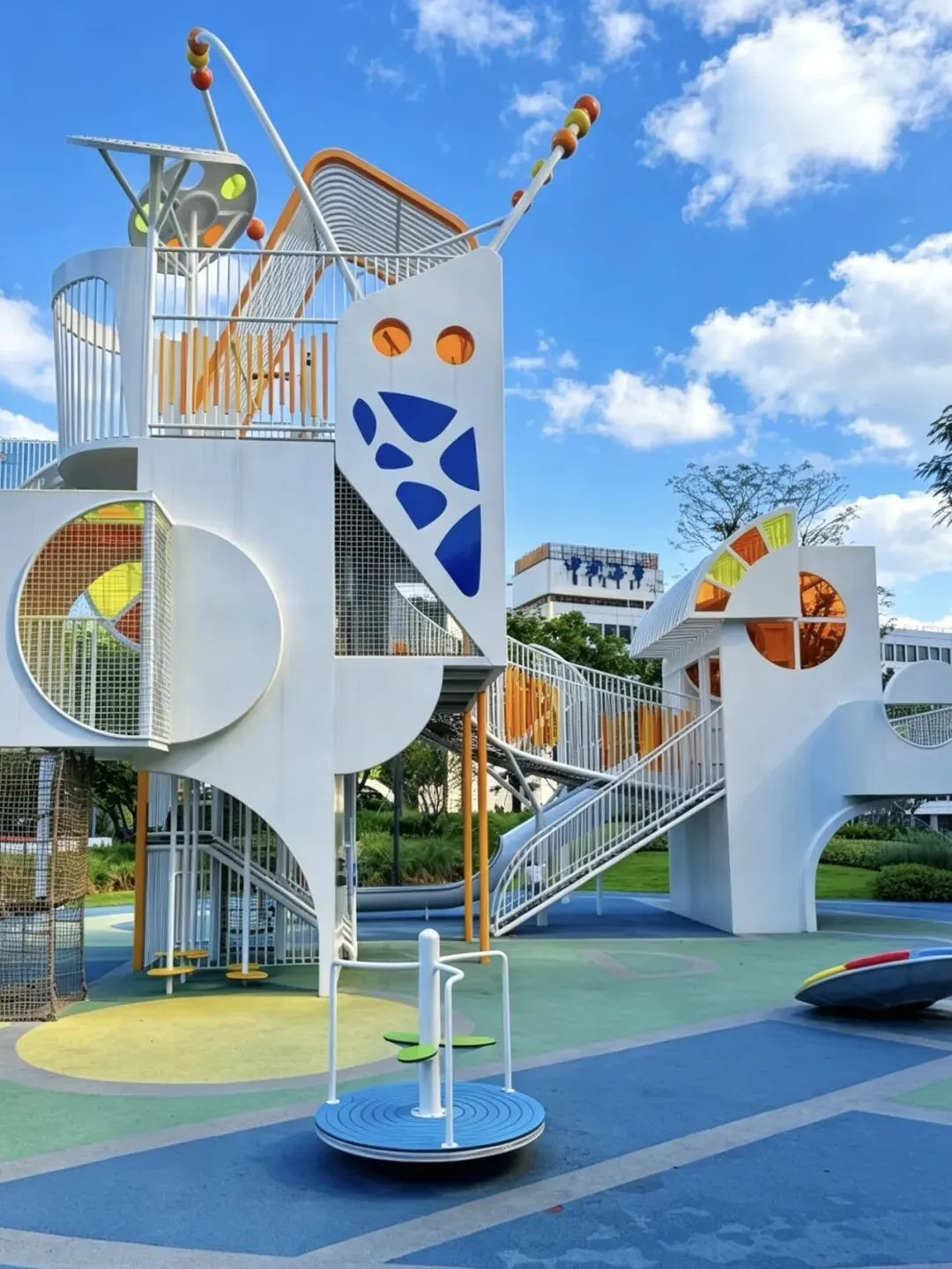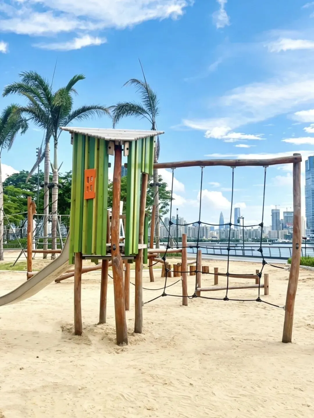 深圳K11由一个北馆、南馆组合在一起,北馆和南馆商场风格不一样,北馆比较文艺有港味,南馆商场更大更有深圳本土味,另外这里有着270°海景视角美到窒息,拍照超出片,山海一色北馆:L5 云端广场看太子湾 ,北馆L4彩虹天桥连接北馆南馆从高空视角看,白色球形主体层层叠叠,被绿植环绕,夜晚灯光点亮,海风一吹,整座建筑像悬浮在海边的艺术堡垒,辨识度直接拉满太子湾滨海岸线东起深圳湾游艇会后门,西至蛇口邮轮母港出入口。海岸线长约1.3公里公园有着270°环形海景长廊,入眼深圳湾跨海大桥和香港群山,最醒目的打卡地标亮橙红色的城市取景框廊亭这里有着舒适的海岸线,可以海边漫步、骑行,海边栈道深圳市蛇口的海上世界文化艺术中心,是世界著名建筑师槇文彦先生在中国的首件作品,依山、傍海、临城,将人文生活诗意串联这里不定期有各种艺术展、画廊作品,有的展览是免费的有的收费的。这里可以看到270°无遮挡落日橘子海,在海边惬意吹风这里知道的人少,来玩的孩子少。儿童乐园有白色城堡、滑滑梯 、攀爬网、翘翘板 、荡秋千 、木屋大沙池 、转盘椅、蹦蹦床 、传声筒、独木桥,不仅颜值高还很大,玩的设备几乎齐全了滑梯的设计也很有意思,有网格爬行和楼梯爬行,网格段有两层网格,网眼较小,不怕卡脚。这里有一个缺点是大人没有休息的地方,这个要注意下1、夏天的话游乐场建议早上10点之前去或者下午4点之后去,会最舒服,避开烈日,2、山海连城,K11这里可以骑行到海上世界全程舒心不绕路3、这个滨海木栈道漫步非常惬意,能看到邮轮、跨海大桥、推婴儿车友好,并且沿途有补给站、洗手间都方便。这几个地方都是挨的比较近的,徒步、骑行、儿童乐园,商场,看展这里都有,