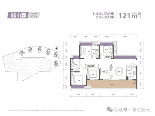 约 121㎡ 4 房 2 厅 2 卫改善型四房,南北通透,阔绰横厅,全明户型,满足三代同堂或二孩家庭。
