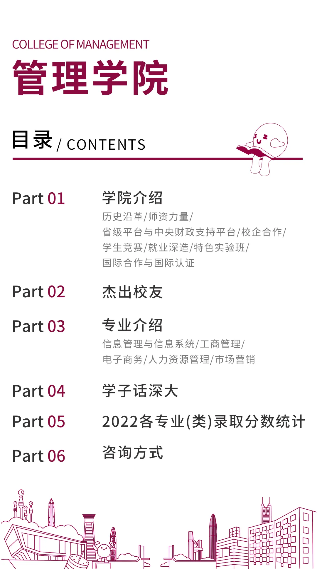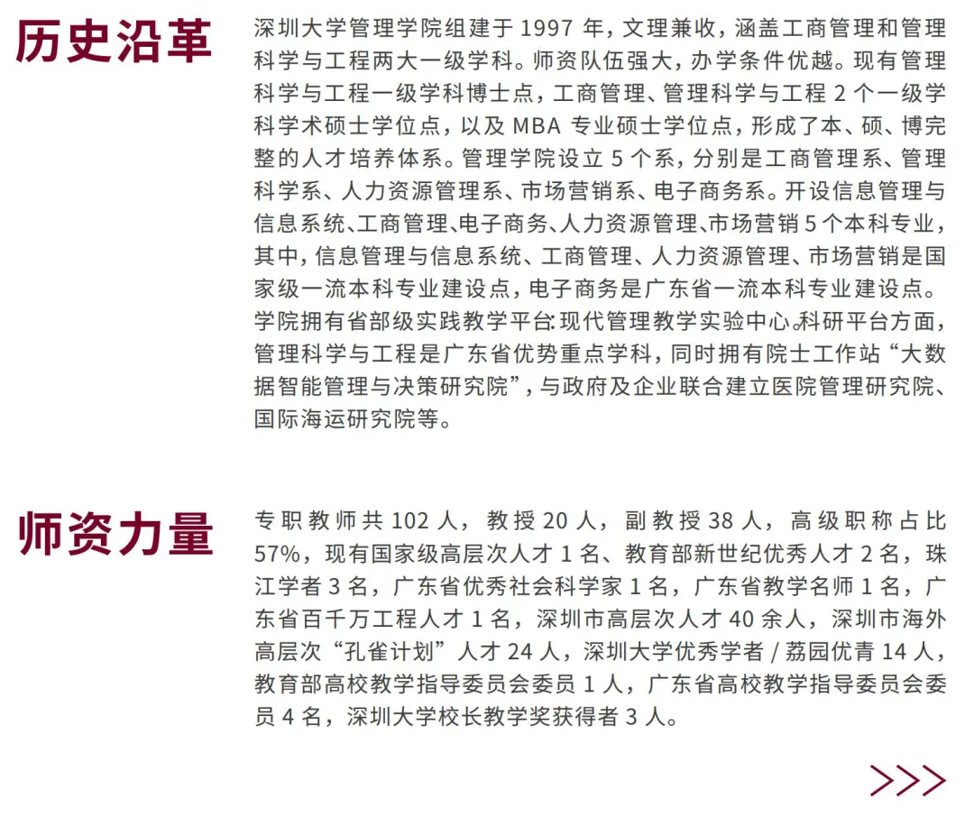 现代社会由各类组织构成,管理正在发挥着保障现代社会良性运转的重要器官的功能。管理绝不只是常识或经验总结,它是一套系统化的知识体系,可以帮助我们在已知的基础上探寻未知,学习如何在复杂环境中达成合作与秩序。现代组织的活力、绩效、生存都取决于管理和管理者,卓有成效的管理者是现代社会的关键资源和稀缺资源。对于即将思考事业发展的年轻的你来说,成为卓有成效的管理者至关重要。学习管理学,有助于你成为卓有成效的管理者。深圳大学管理学院期待在通向卓有成效的管理者的征程中与你同行!