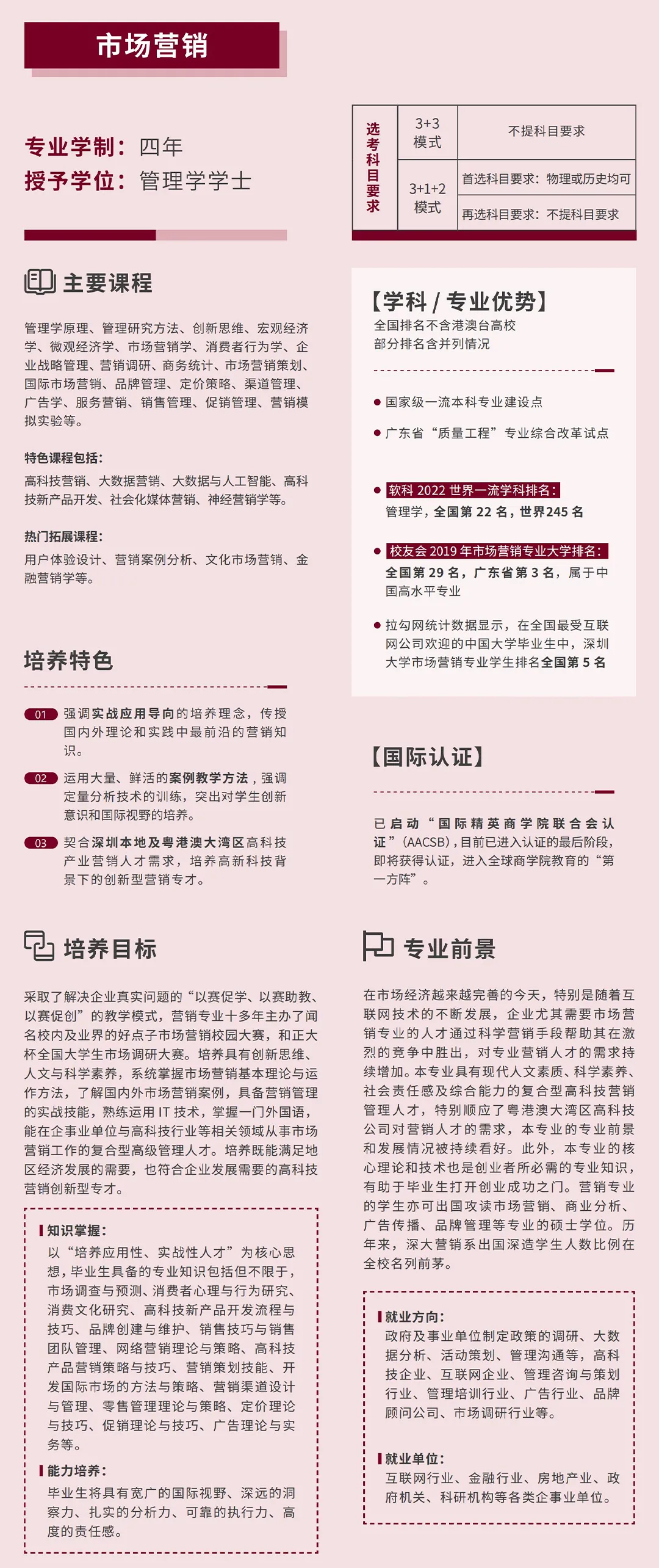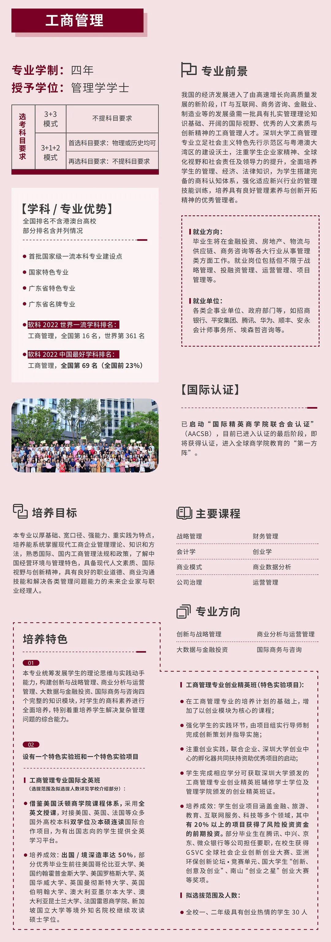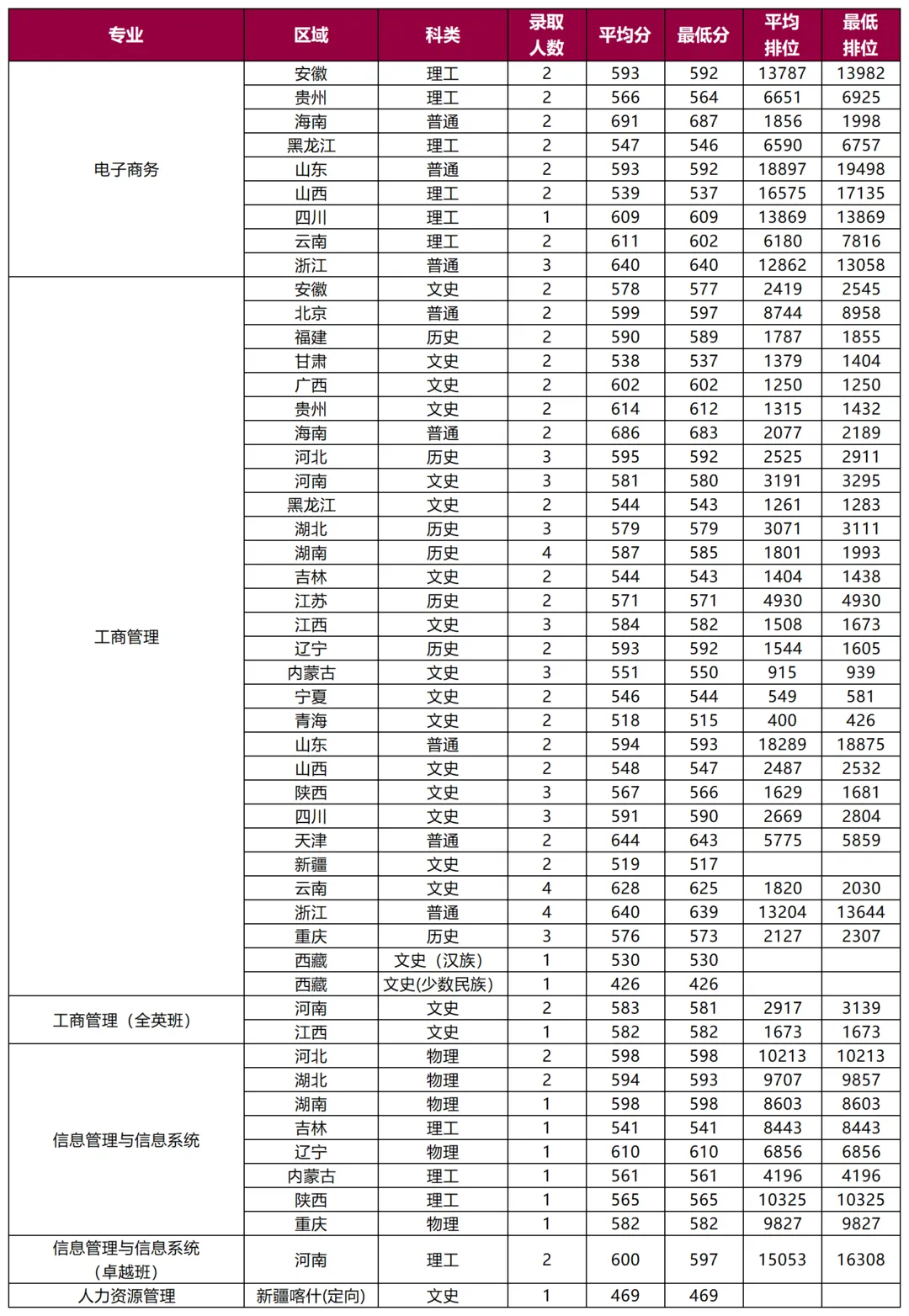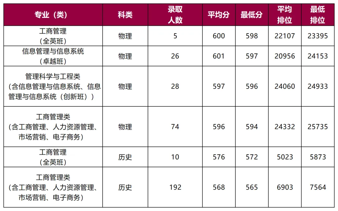 深圳大学管理学院各专业(类)录取分数统计