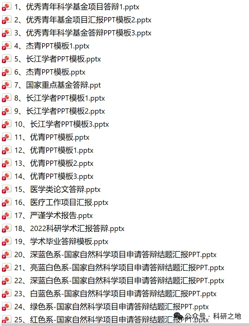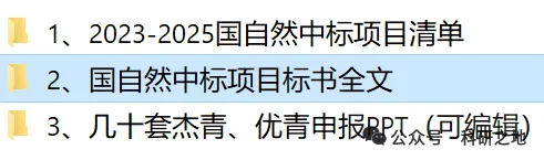 “2025年国自然标书中标清单+标书全文+杰青优青申报PPT”,点击下方《科研之地》公众号关注后发送“2025基金”即可免费获取: