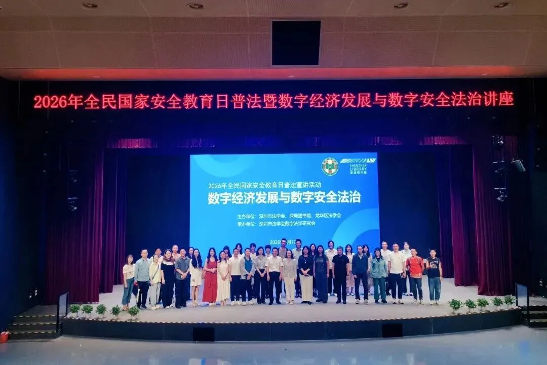 为深入贯彻总体国家安全观,全面落实《中华人民共和国法治宣传教育法》,2026年4月12日,在第十一个全民国家安全教育日到来之际,由深圳市法学会、深圳图书馆、龙华区法学会联合主办,深圳市法学会数字法学研究会、龙华区民治街道司法所承办的2026全民国家安全教育日普法暨数字经济发展与数字安全法治讲座在深圳图书馆北馆圆满举行。