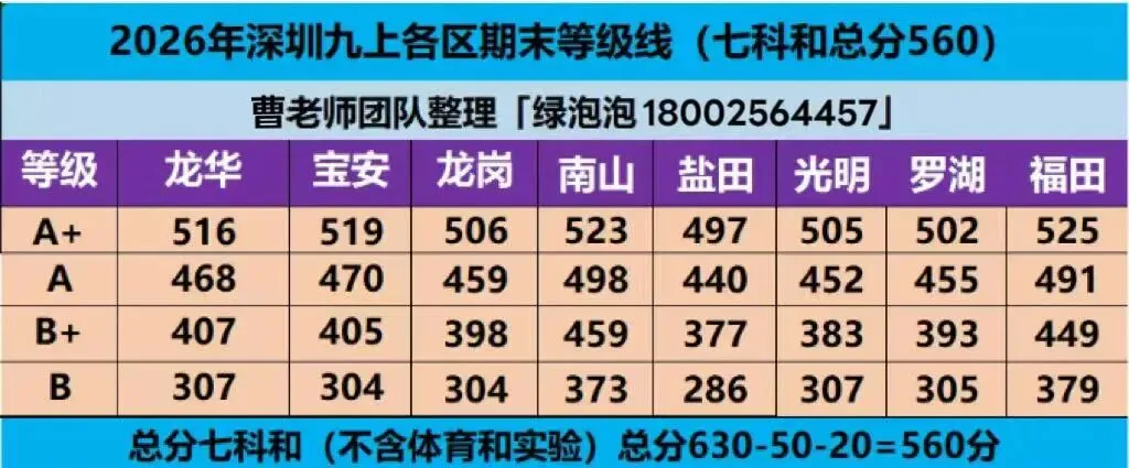 等级线划定标准:所有模考等级线,均按考生排名比例划定(而非固定分数),核心参考“七科和满分560分”(不含体育50分、实验操作20分),这是深圳中考文化课的核心计分基准。