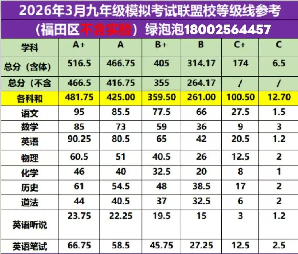 【适用人群】福田区联盟校(含区内多所优质初中)学生,想冲刺福田区重点高中(如深中福田、福田中学)的家长(福田是教育核心区,分数线普遍偏高)。