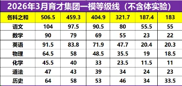 关键:育才集团等级线“各科均衡性”要求高,比如道法A+线47分,比其他联考略高,孩子需兼顾文科各科,避免偏科。