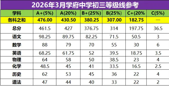 【适用人群】学府中学及南山周边优质初中学生,想对标校内生源、冲刺南山公办普高的家长(学府中学是南山热门公办初中,等级线贴合校内生源水平)。