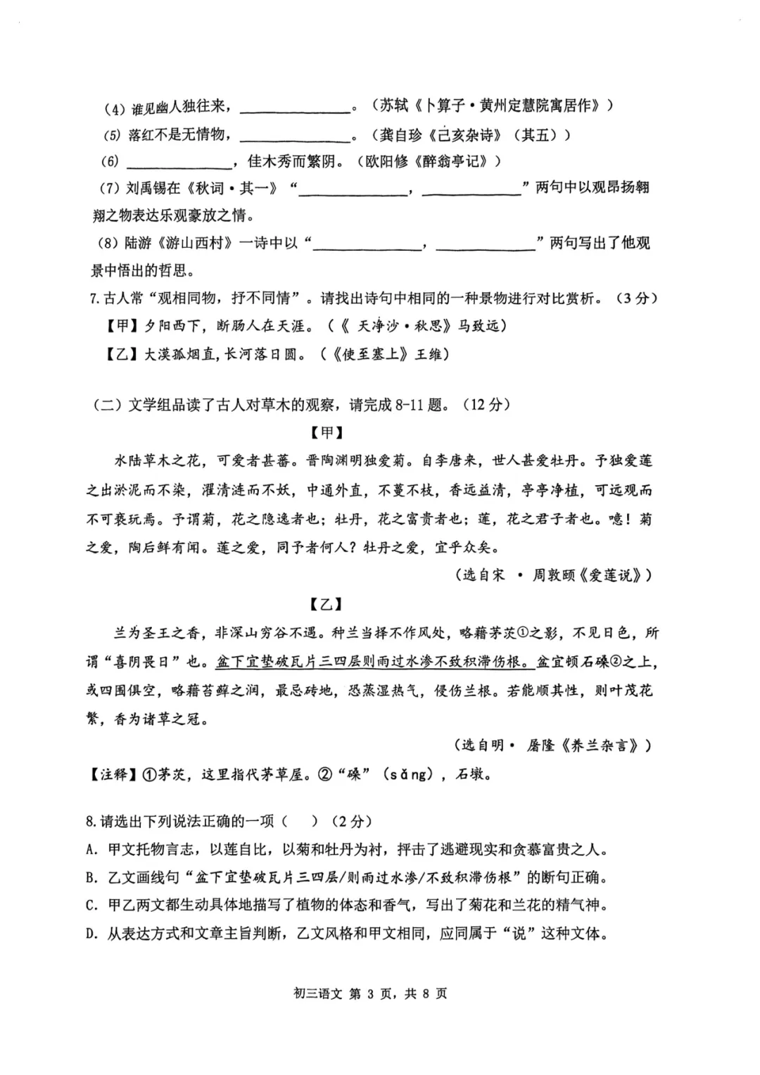 2026年深圳市34校联考初三年级二模语文试卷及答案解析