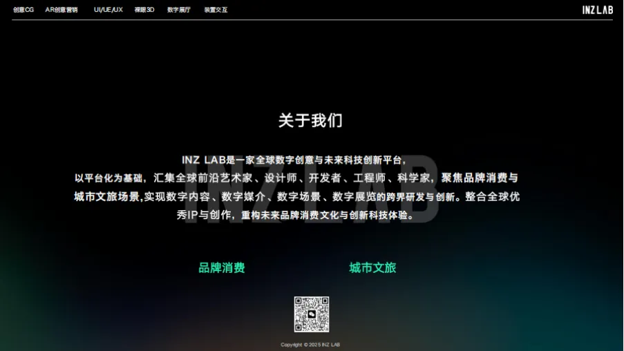 INZLAB是一家全球数字创意与未来科技创新平台,以平台化为基础,汇集全球前沿艺术家、设计师、开发者、工程师、科学家,聚焦品牌消费与城市文旅场景,实现数字内容、数字媒介、数字场景、数字展览的跨界研发与创新。整合全球优秀IP与创作,重构未来品牌消费文化与创新科技体验。