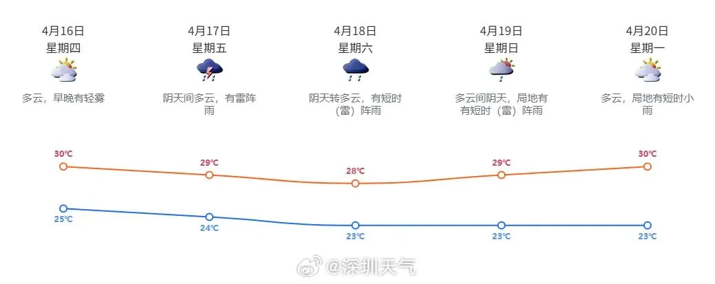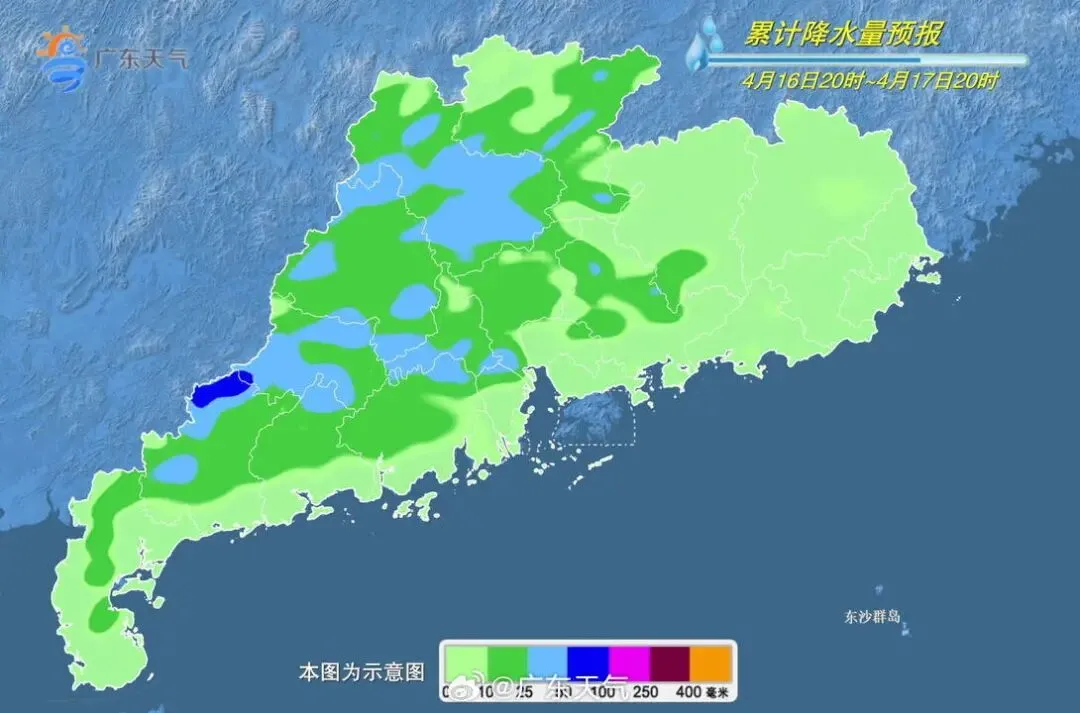 16日,韶关、清远、珠三角中北部多云转中到大雨局部暴雨,云浮、茂名、珠三角南部、河源多云转雷阵雨局部大雨,上述地区雷雨时局地伴有8到9级短时大风,其余市县多云,局部有(雷)阵雨。部分市县早晚有轻雾。最高气温:雷州半岛34~36℃,其余大部分市县28~32℃。
