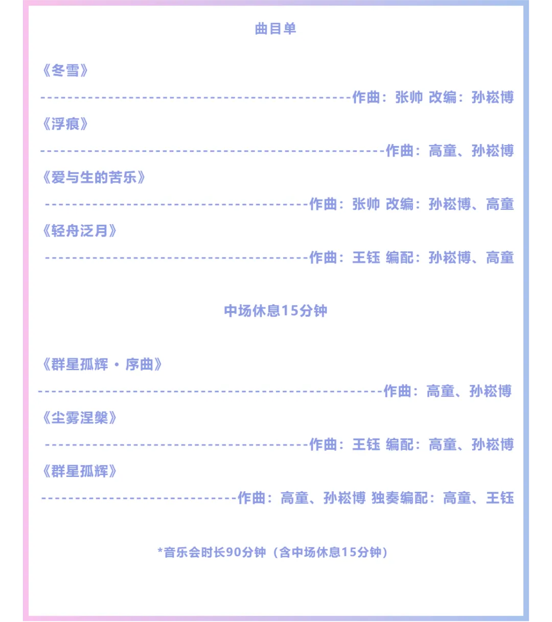 *演出总时长约90分钟,含中场休息15分钟