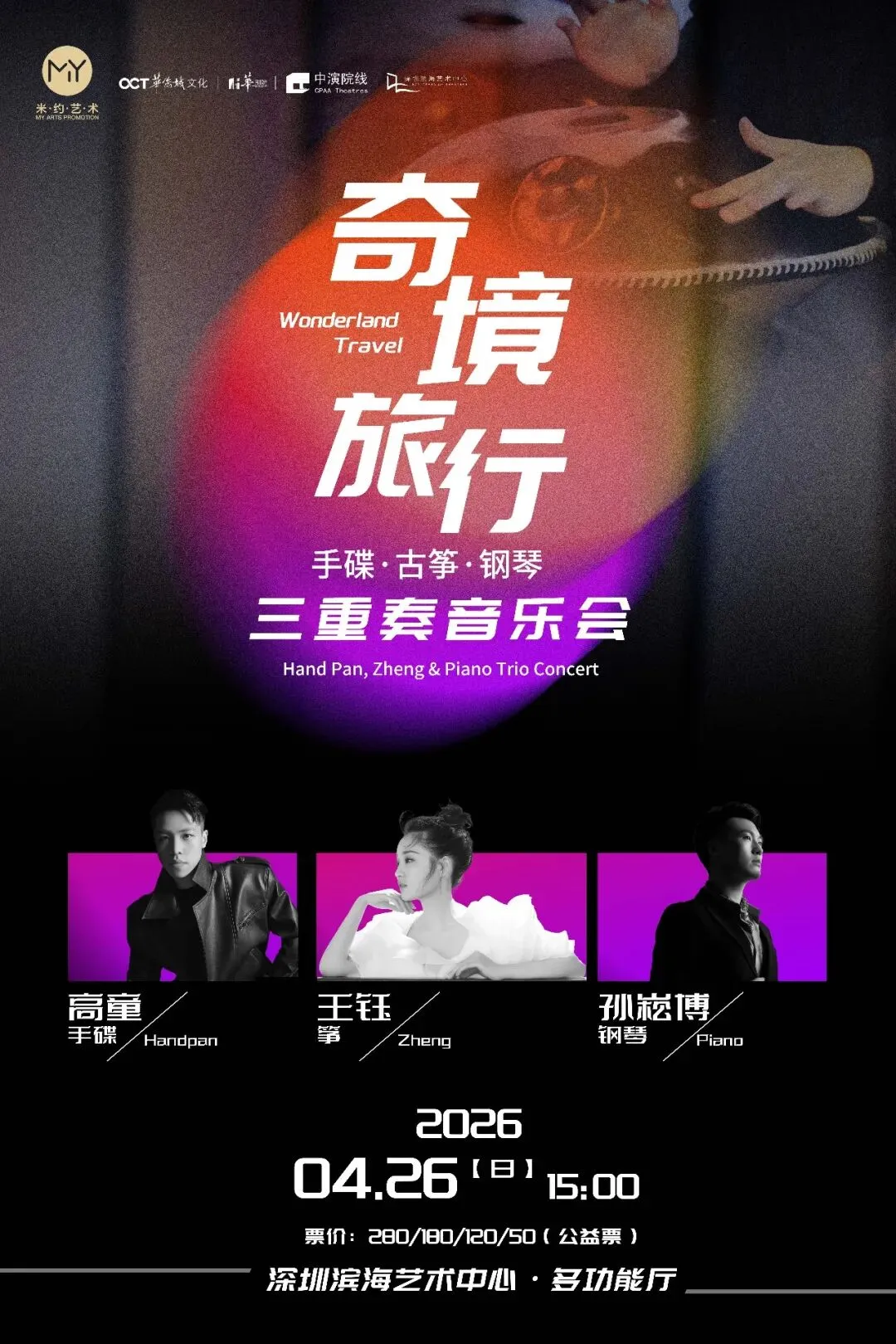 “奇境旅行”三重奏作为国内唯一职业级“手碟+古筝+钢琴”三重奏,“奇境旅行”的每一场演出,都以独特的乐器编制和原创内核,打破古典、民族与世界音乐的边界。