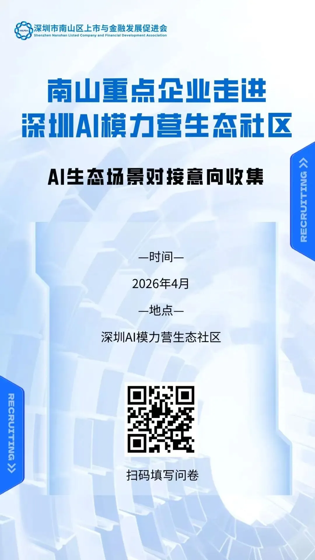 展望未来,南山区上市与金融发展促进会将以此活动为契机,进一步发挥桥梁与纽带作用,坚持需求导向,持续收集并梳理企业的动态发展需求,构建“企业需求清单”,实现更精准的资源匹配与赋能。协会将持续助力南山打造更富活力的科技企业成长沃土与创新高地,推动人工智能技术走进千行百业,赋能产业全面升级,共同为区域经济的高质量发展谱写新的篇章。