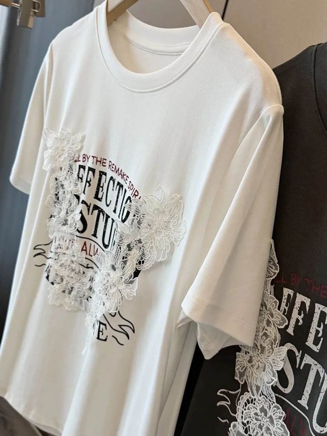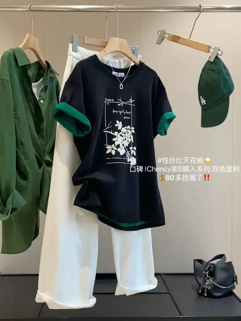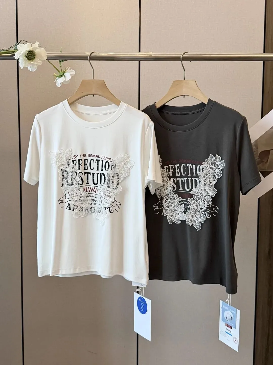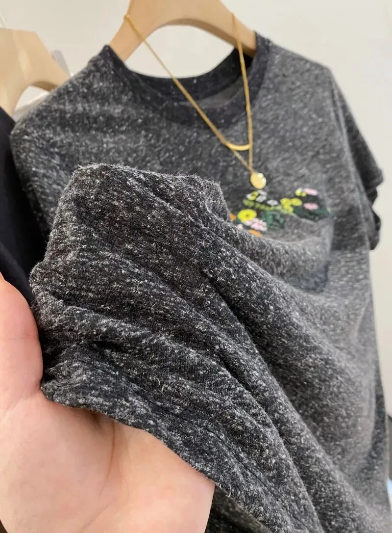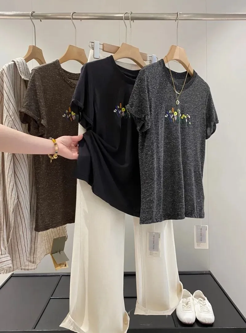 【淘宝】https://e.tb.cn/h.ipsp7PhxnWE12gr?tk=rmcU5gqH88r CZ057 「IN BLUE Chency家!春夏百搭高克重双色面料立体玫瑰刺绣短袖T恤」