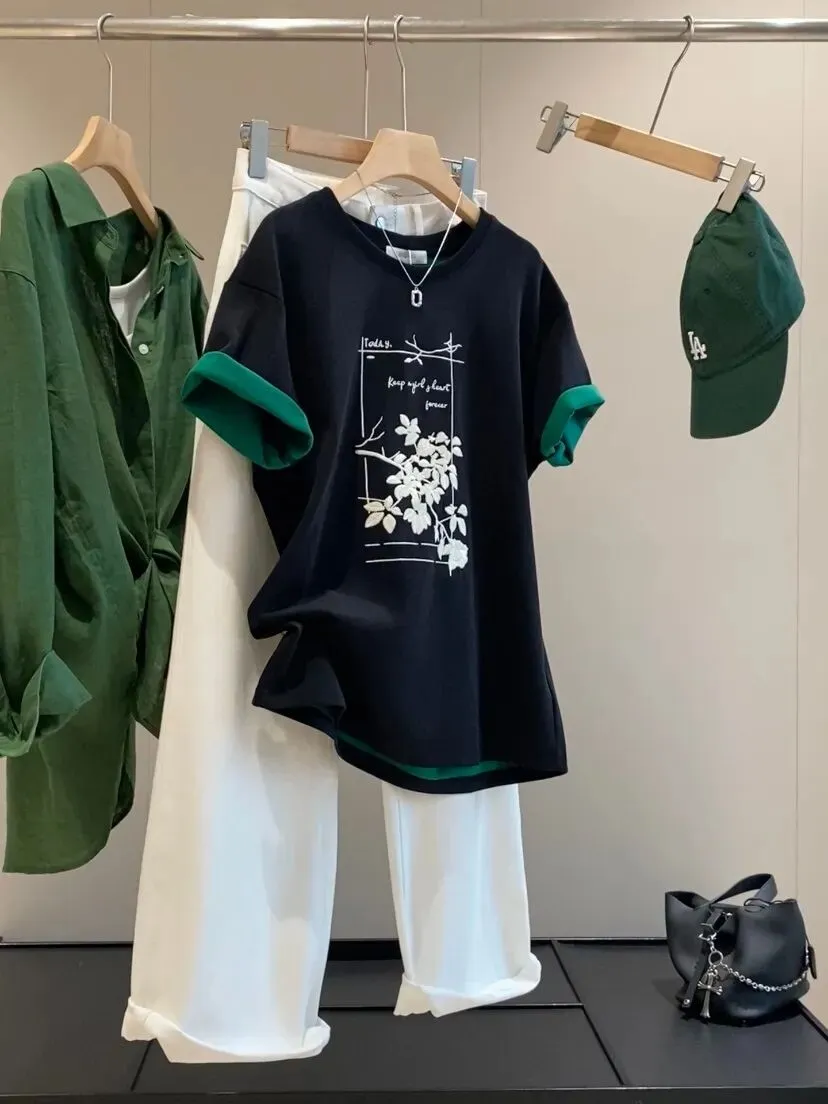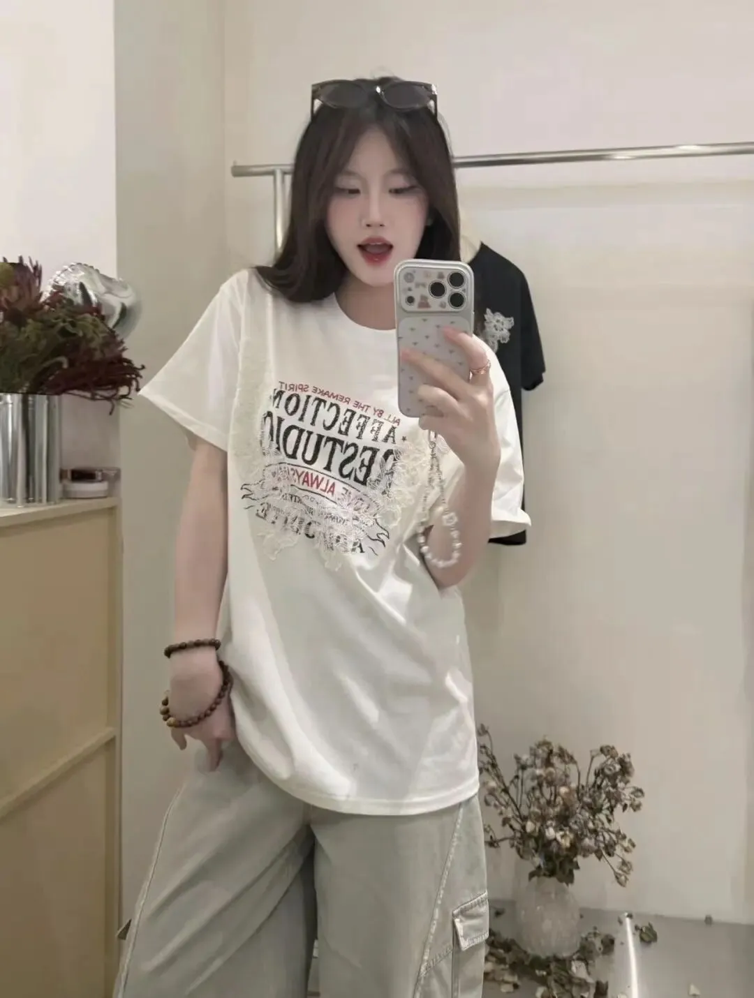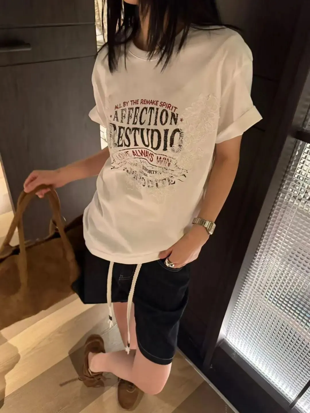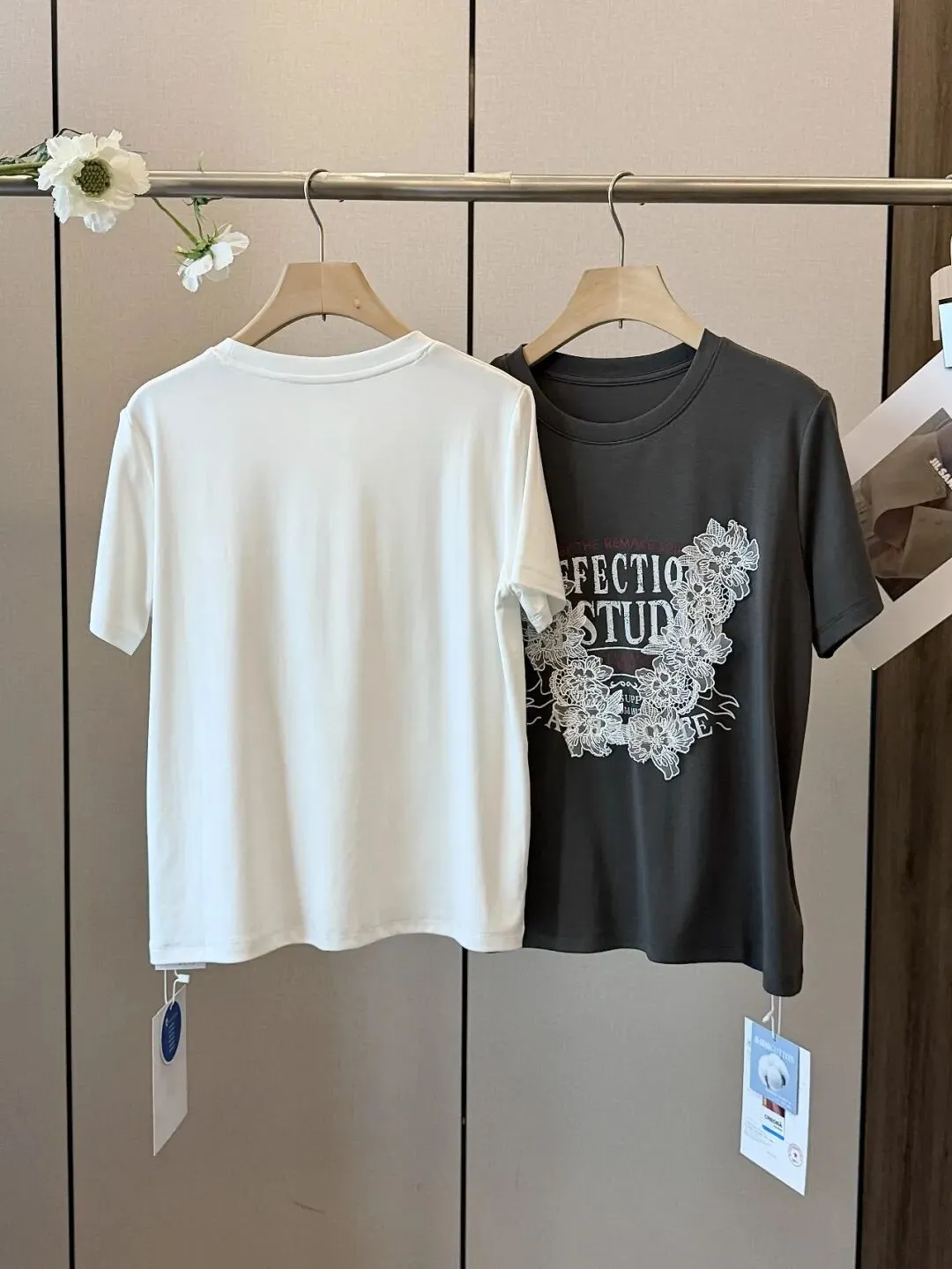 【淘宝】https://e.tb.cn/h.ipsp7PhxnWE12gr?tk=rmcU5gqH88r CZ057 「IN BLUE Chency家!春夏百搭高克重双色面料立体玫瑰刺绣短袖T恤」