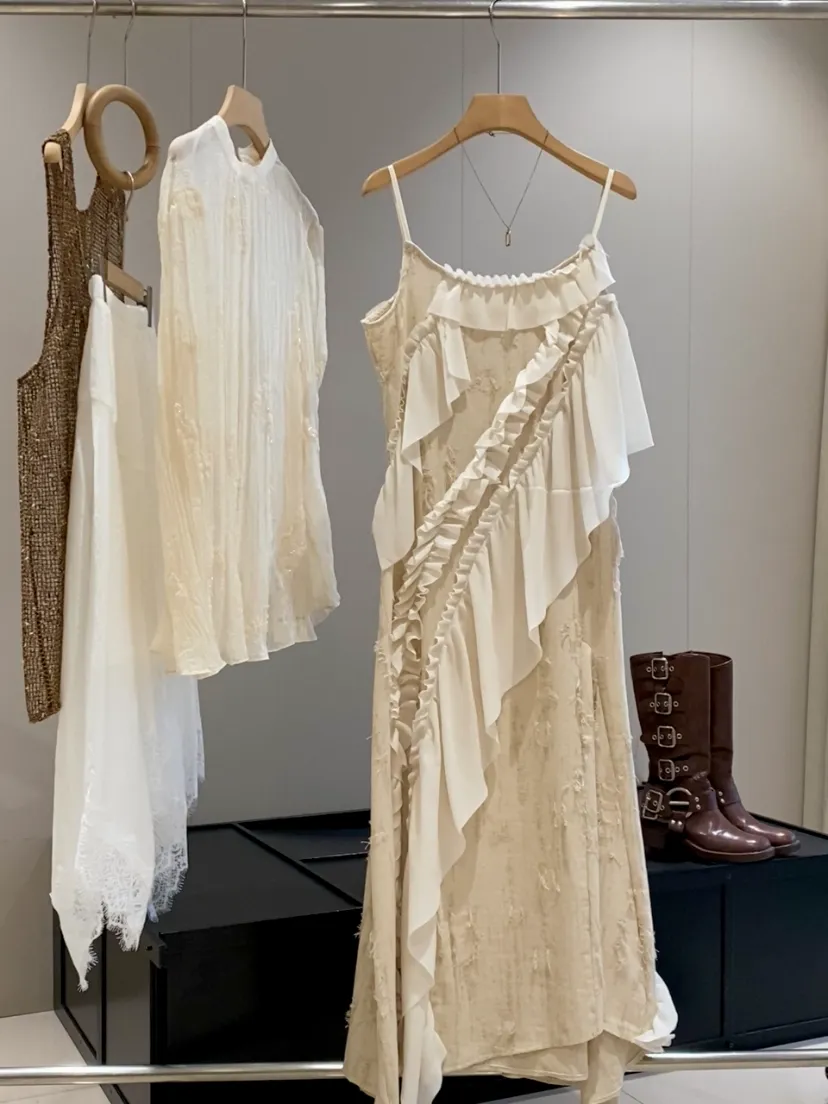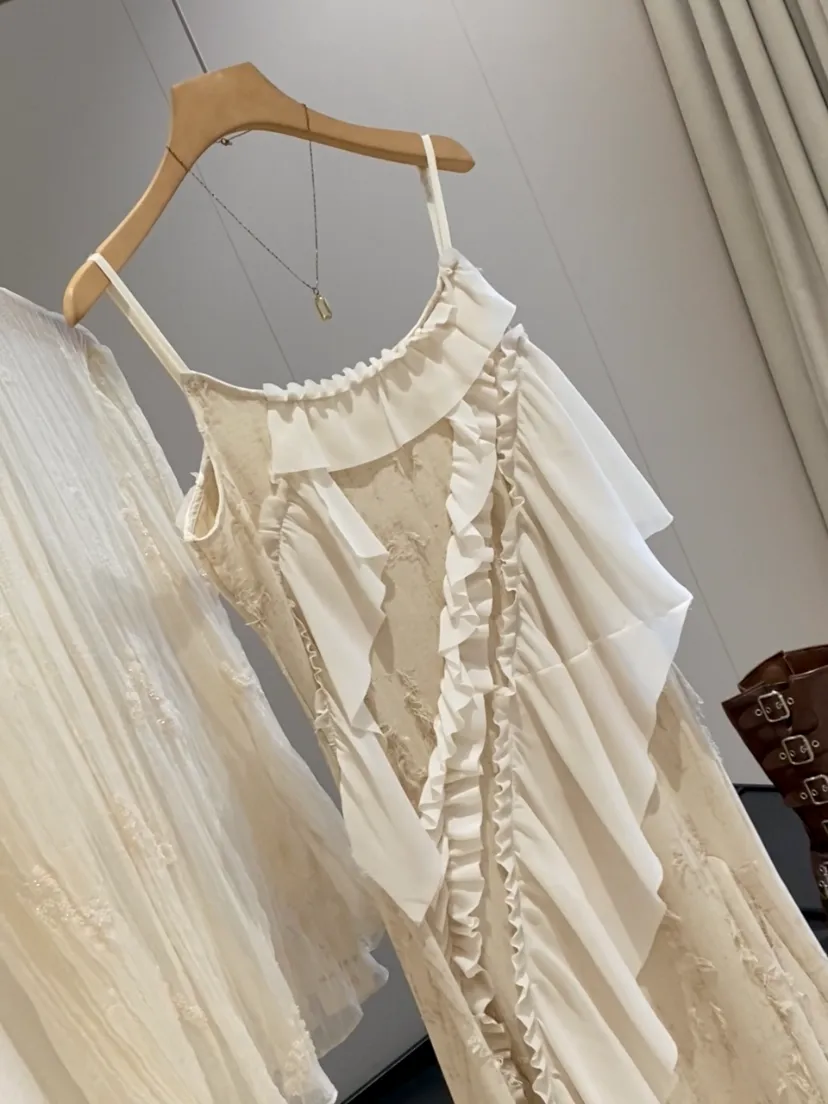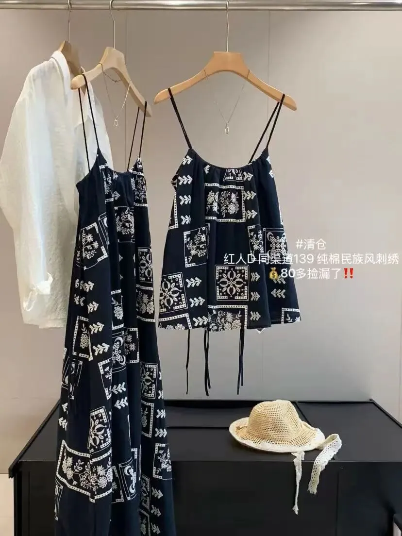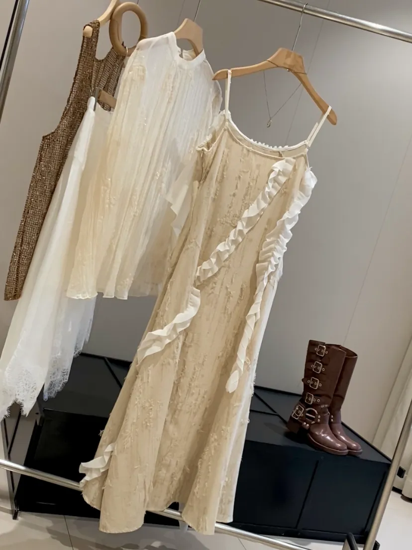 它是把今年流行元素都融合的非常完美的一条吊带连衣裙