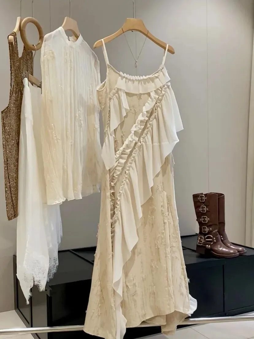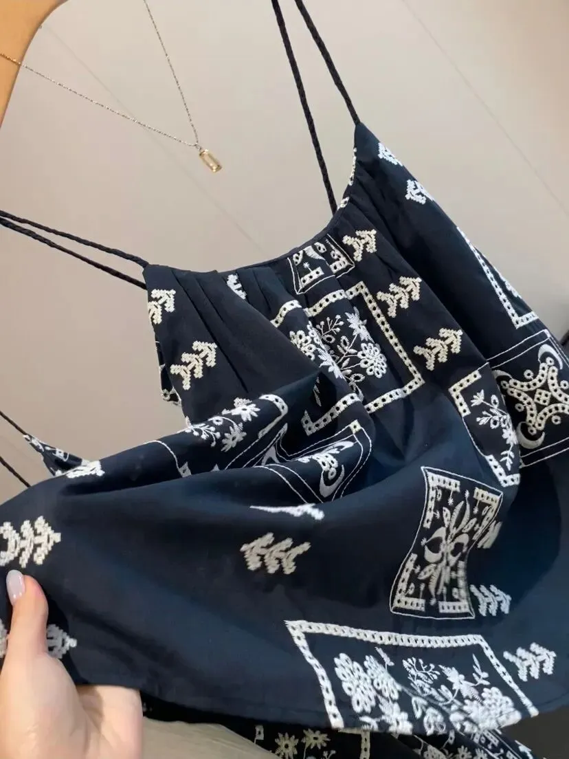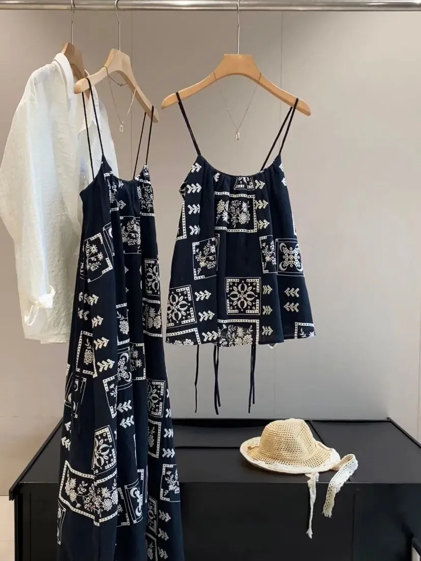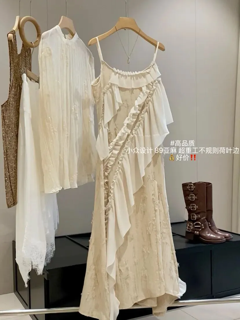 它是把今年流行元素都融合的非常完美的一条吊带连衣裙