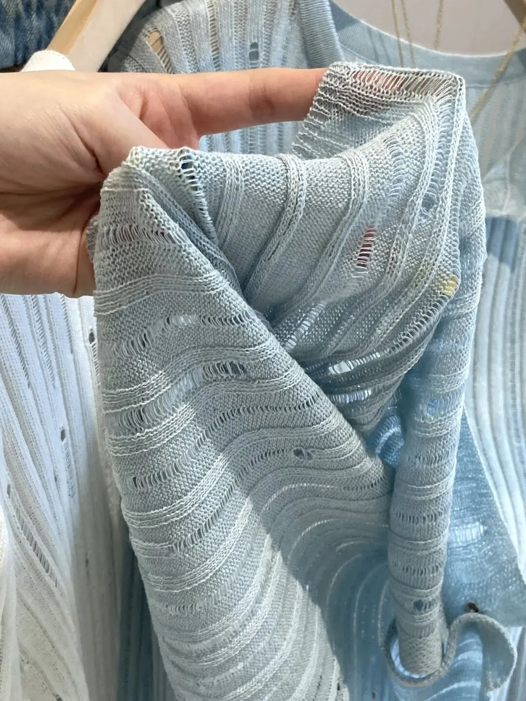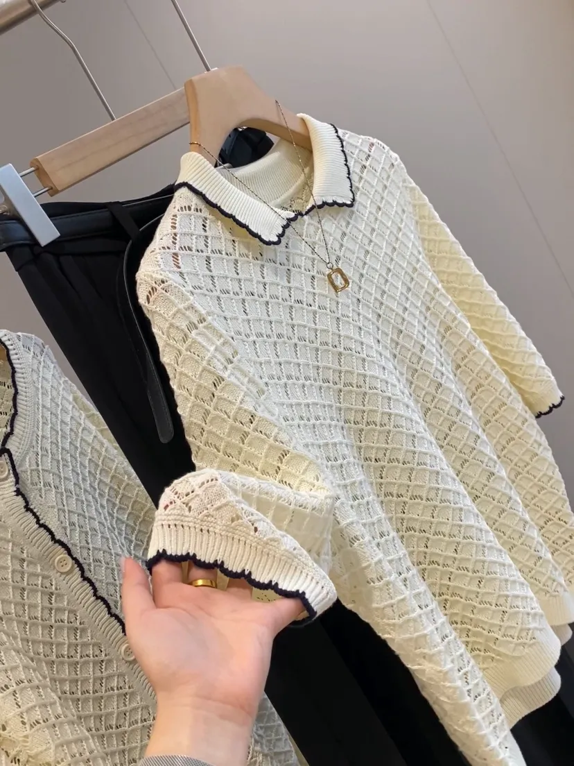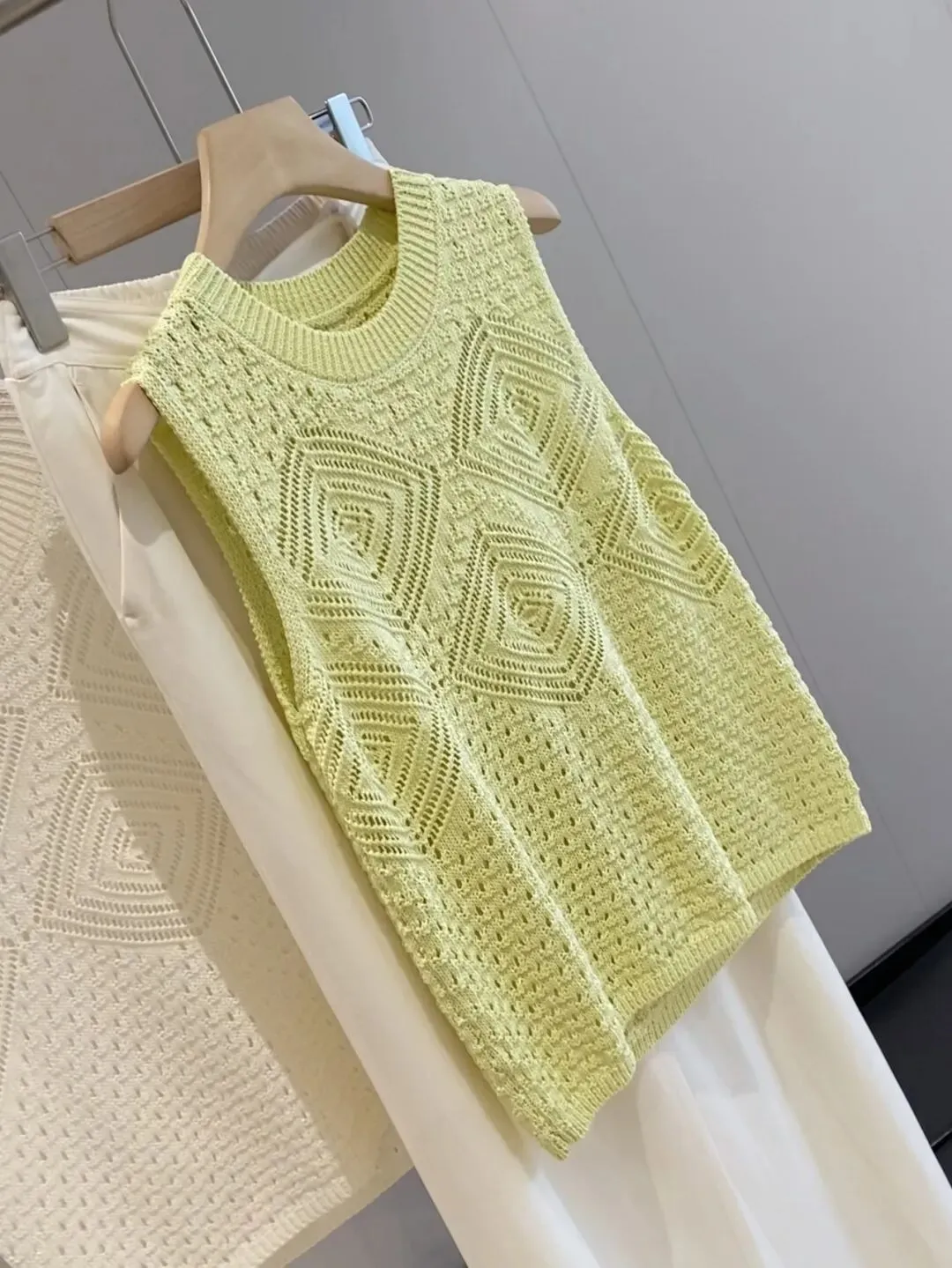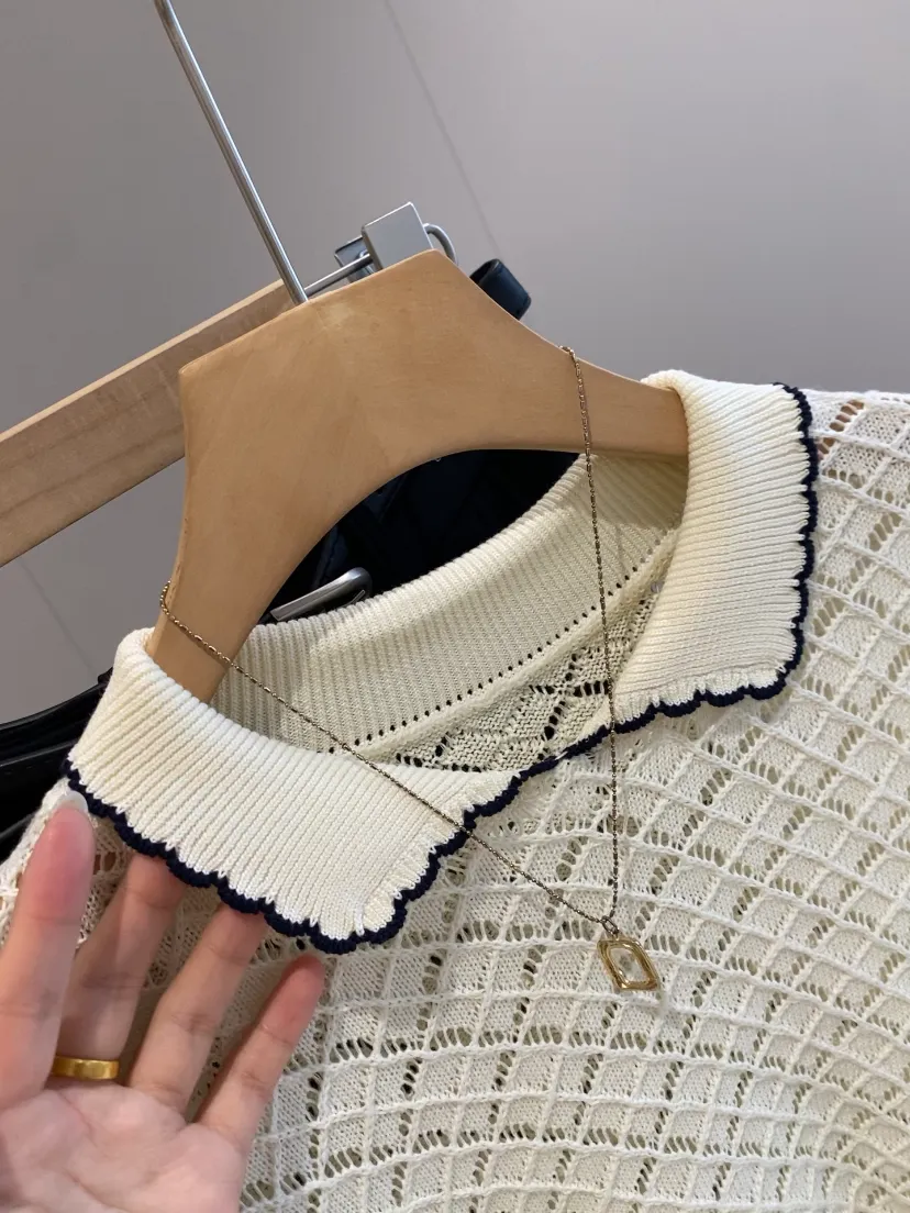 全部做得定染纱线底摆以及领口都是手工钩花的