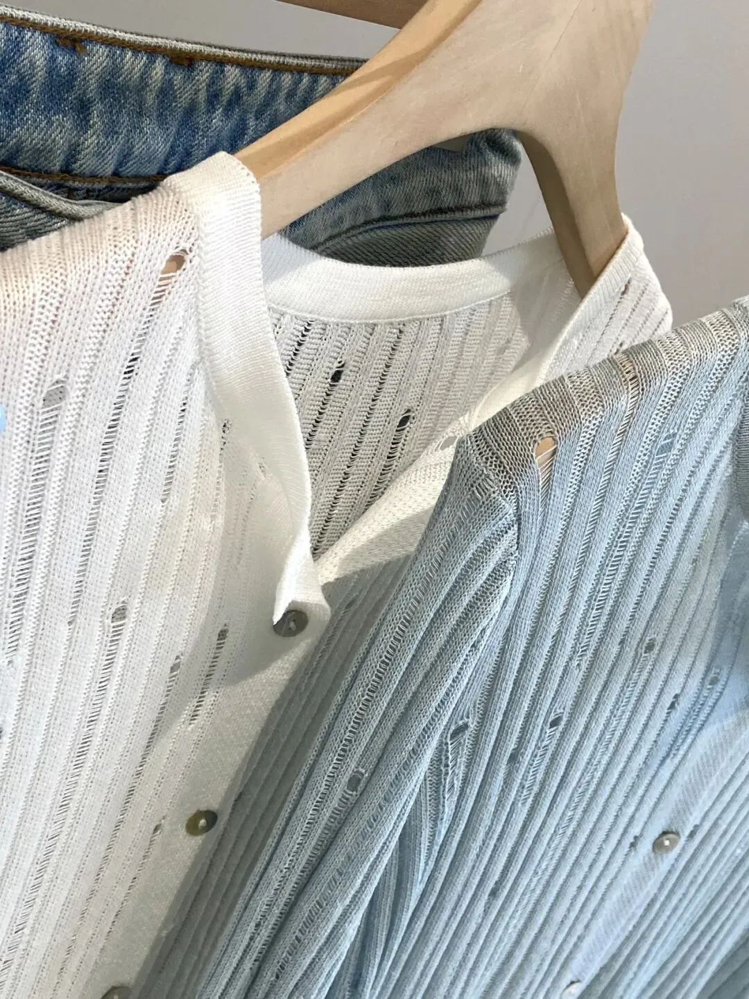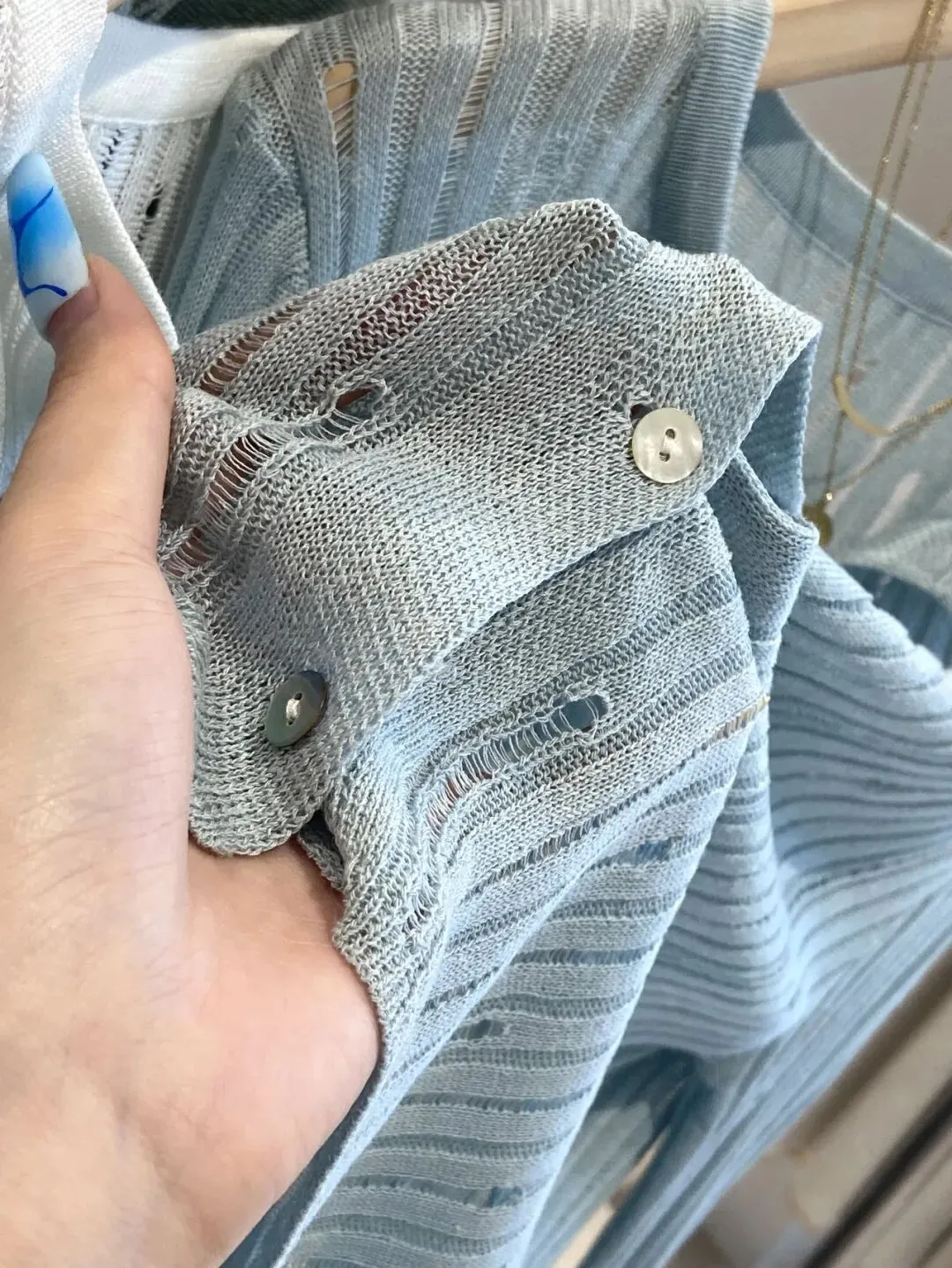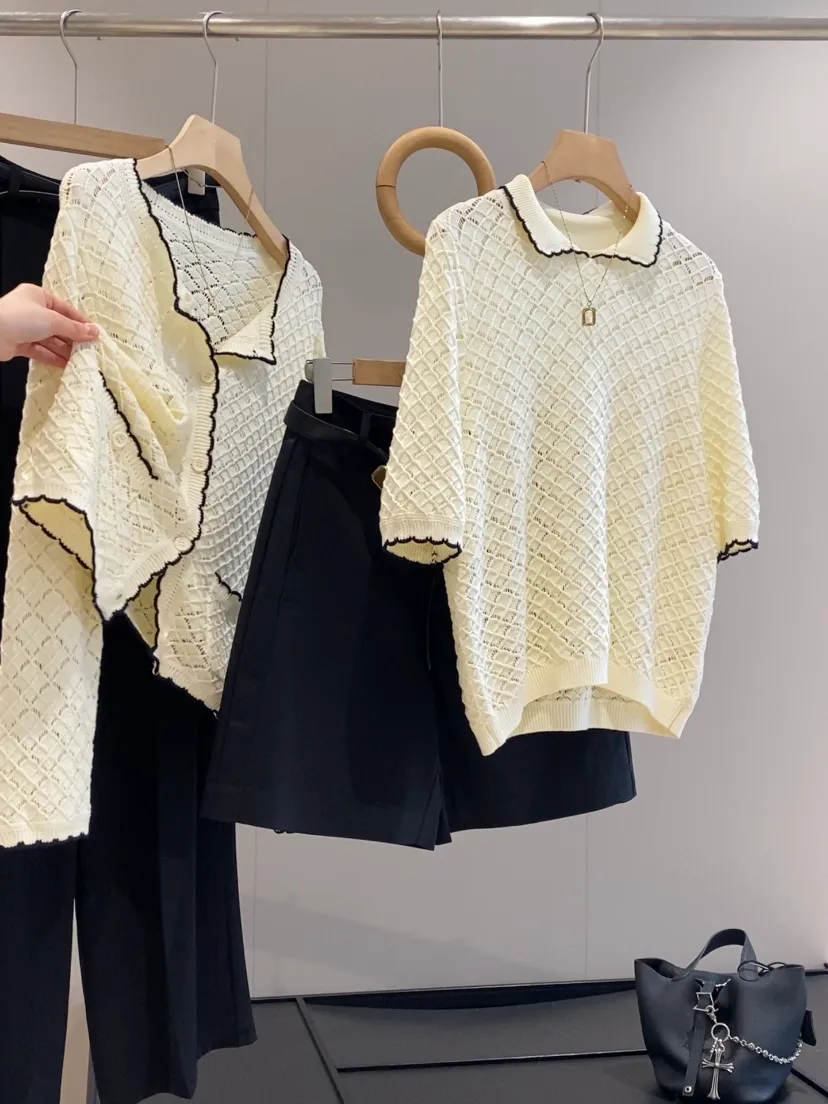全部做得定染纱线底摆以及领口都是手工钩花的