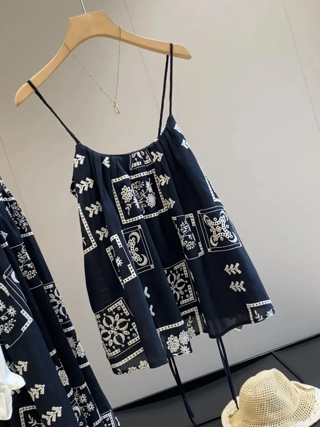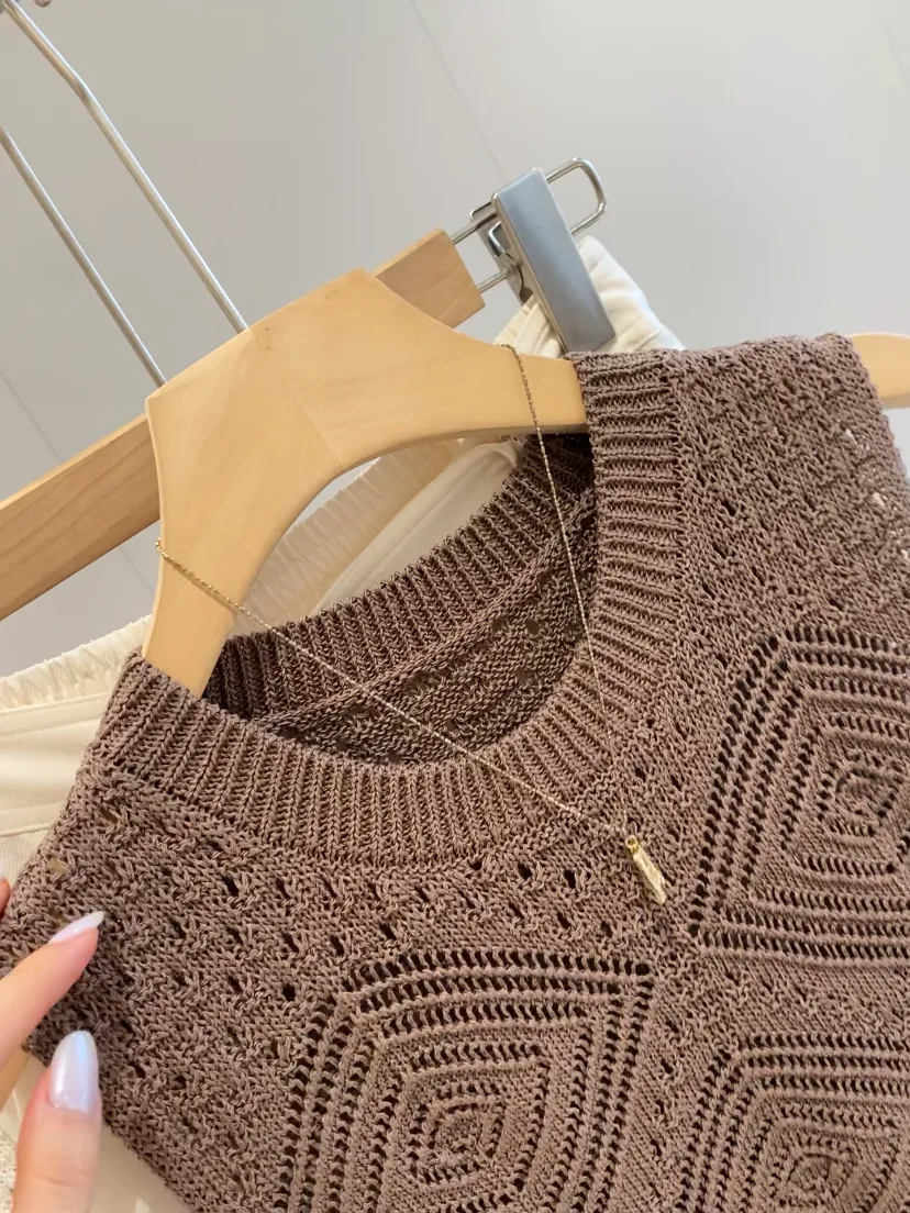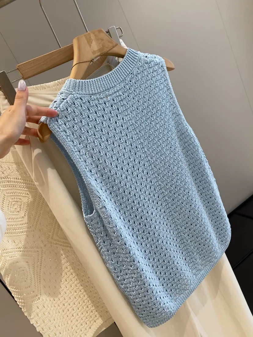 【淘宝】 https://e.tb.cn/h.ioyXsJoZIQ6rNPJ?tk=Cisb5T56C7m MF168 「IN BLUE 南油高端手工钩花镂空麦穗纹14片不规则裁片针织背心裙」