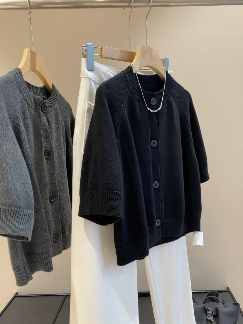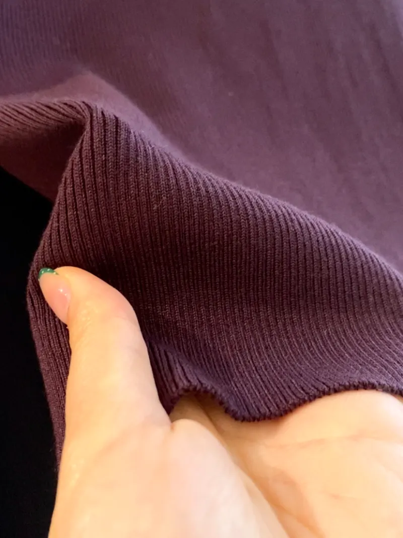 这件领口都是做的基础螺纹圆领,里面都是本布包边