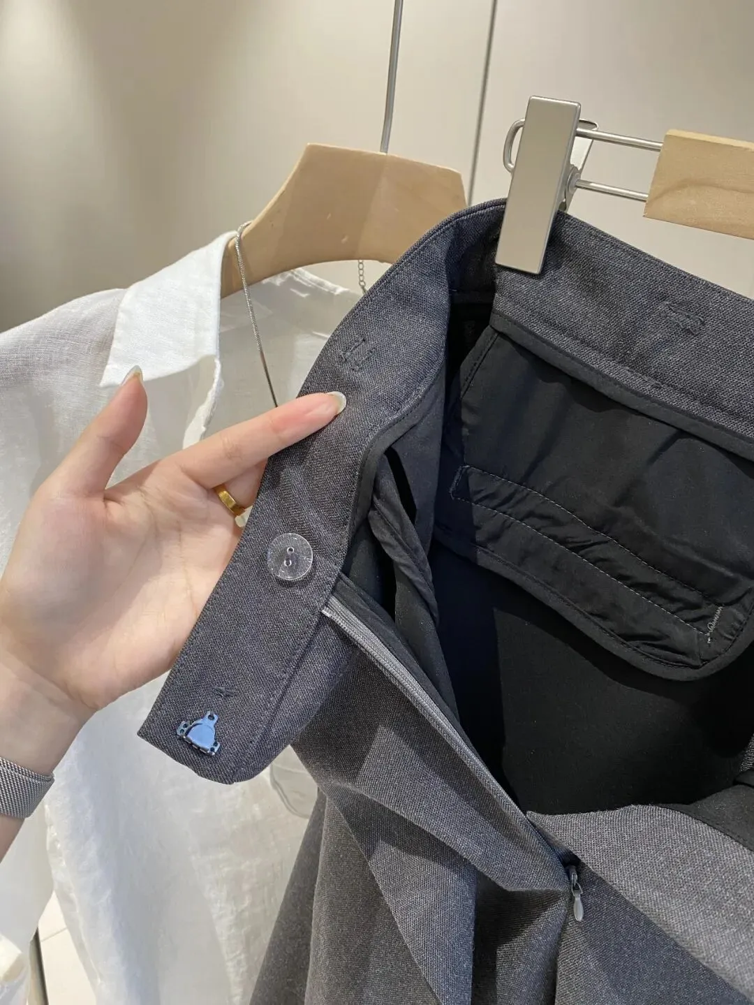 这条整体背后会有两个口袋,就是极简风,又非常好搭