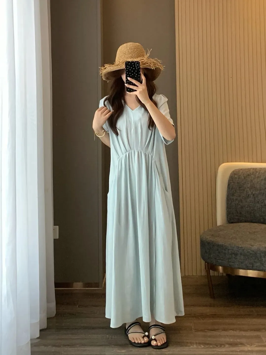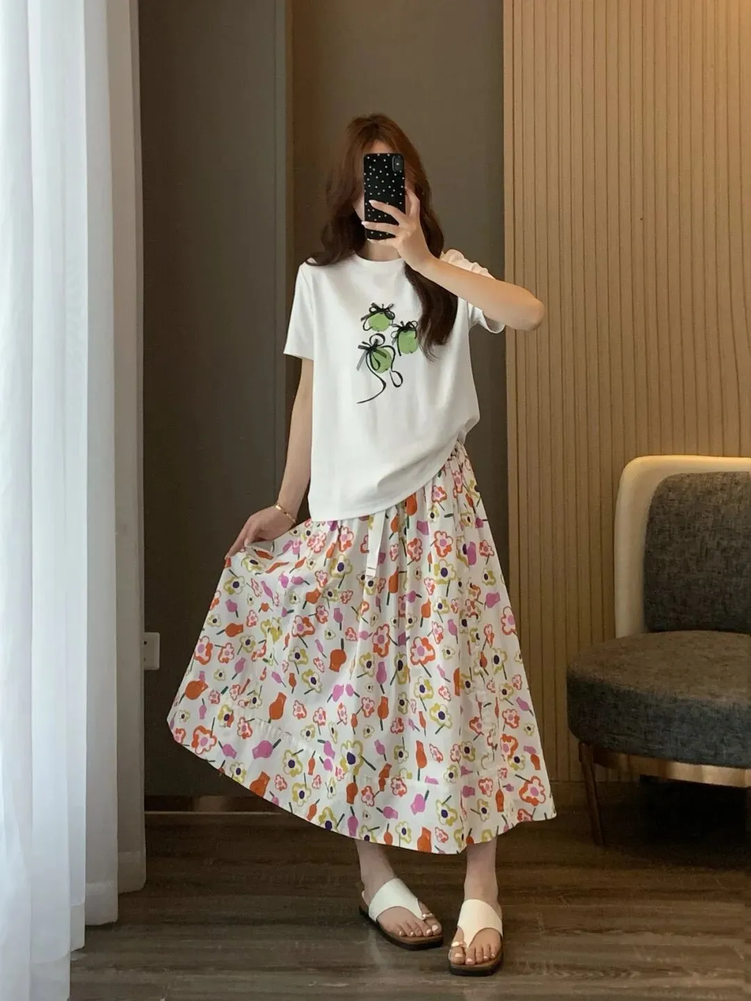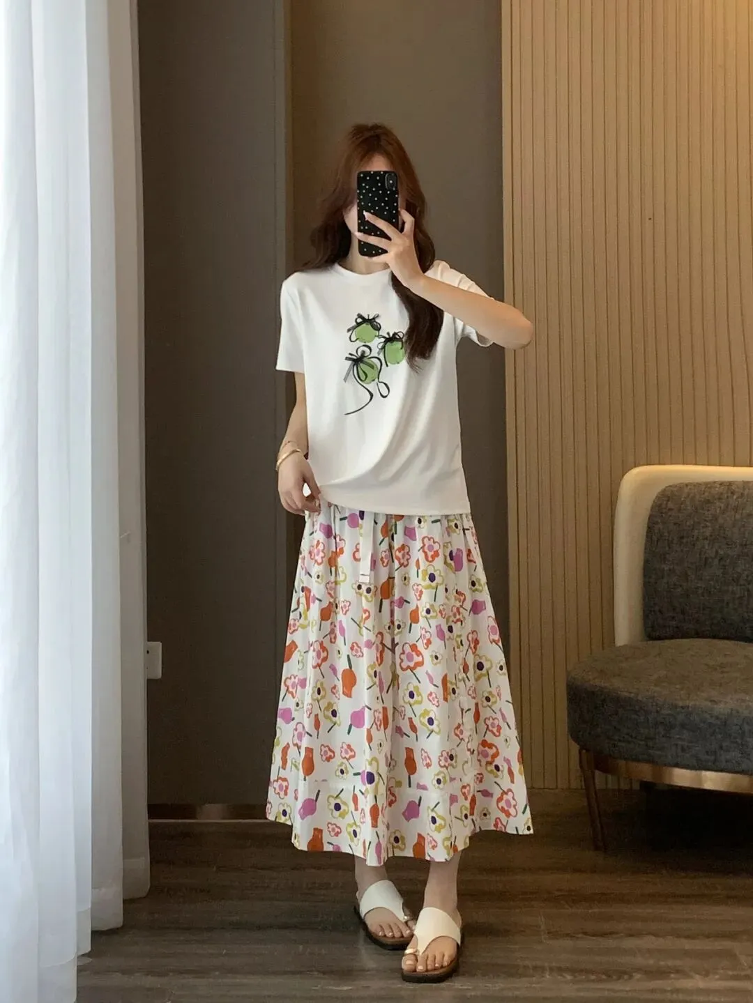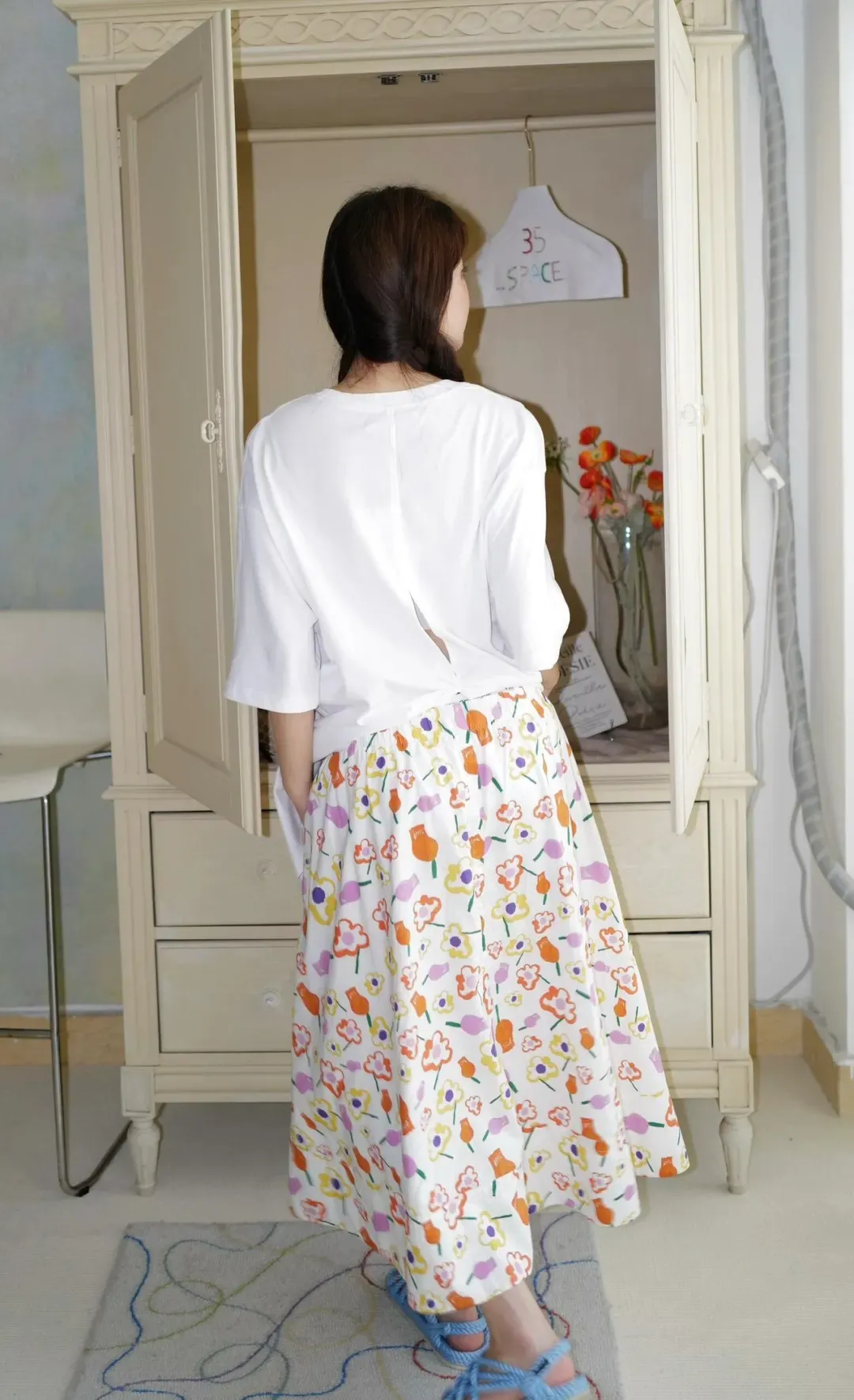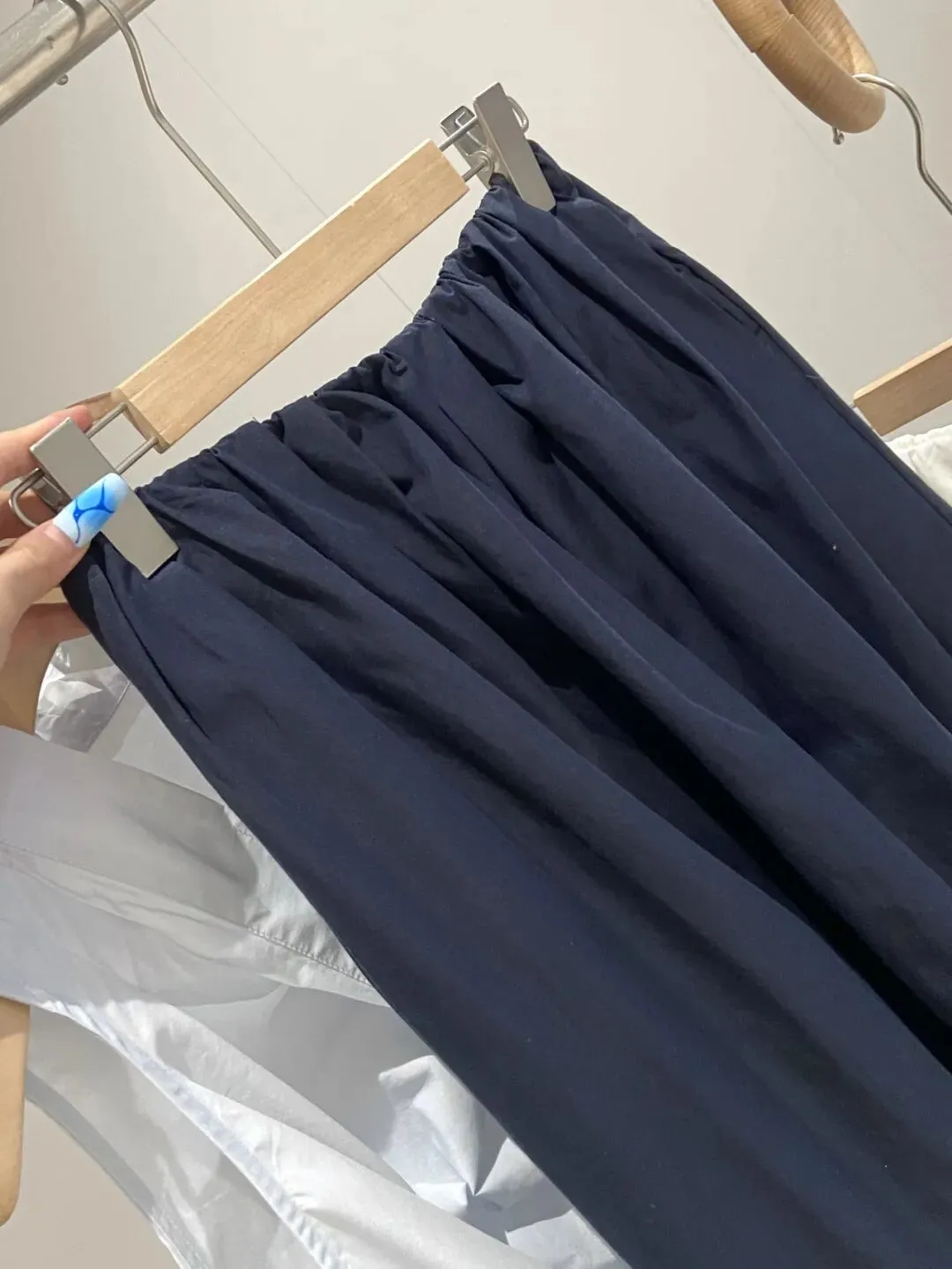 这款裙摆有一定摆量,一点都不贴腿