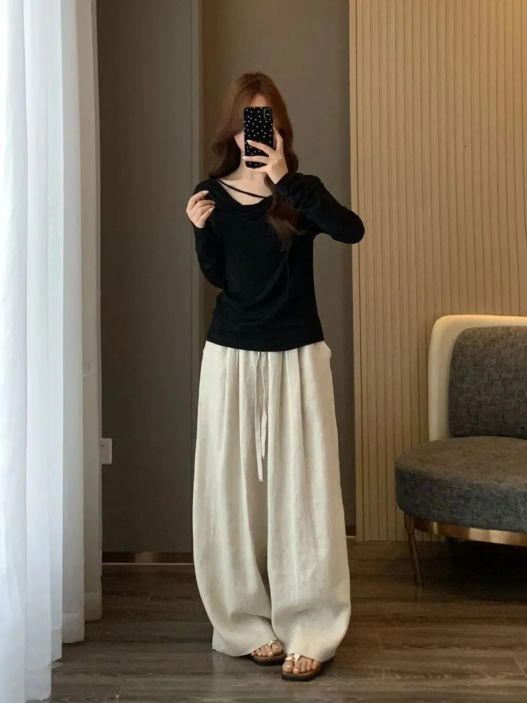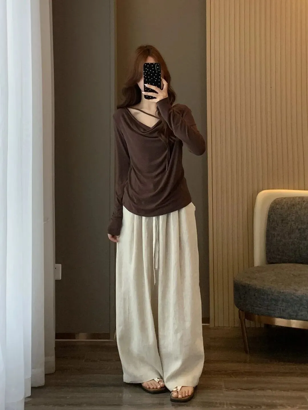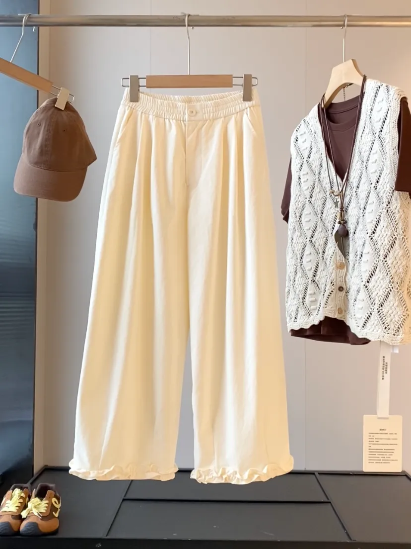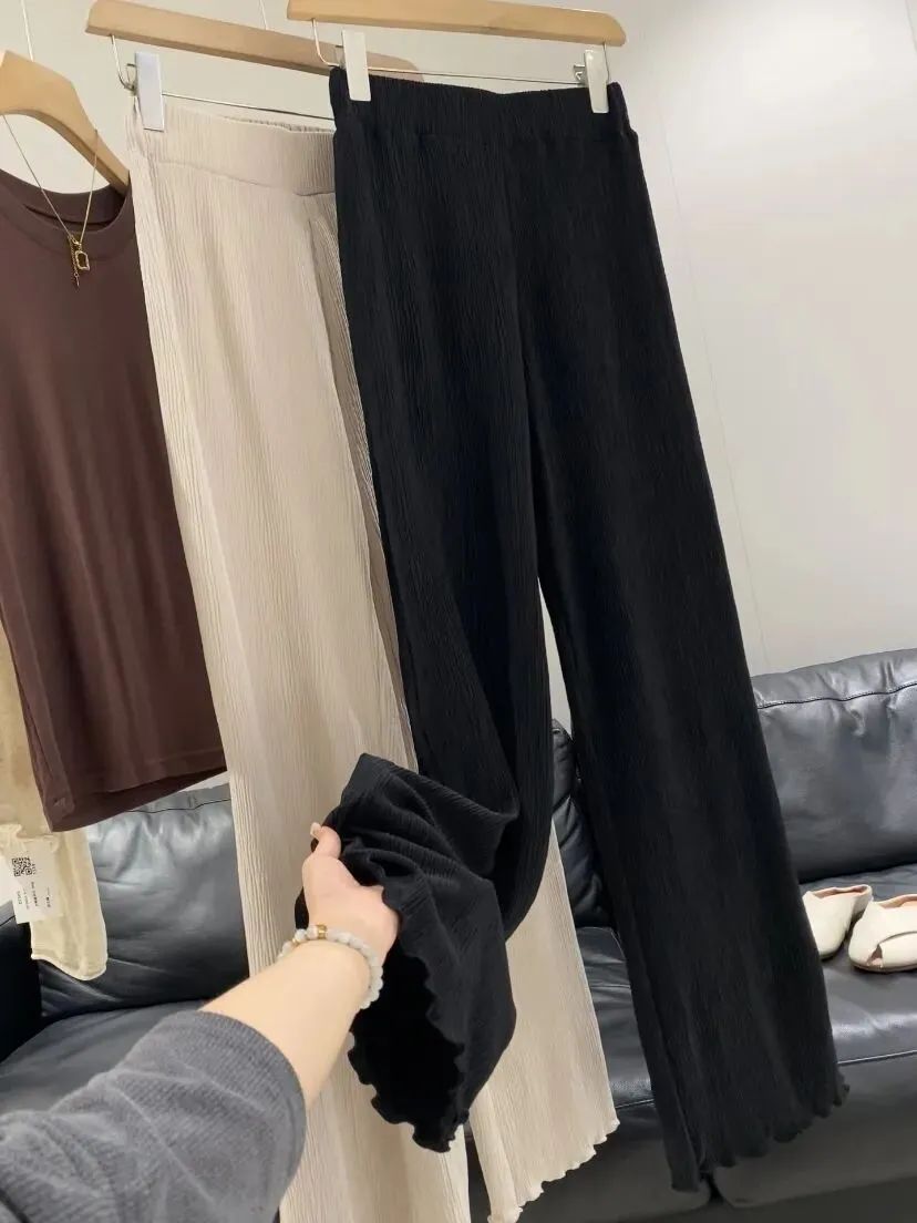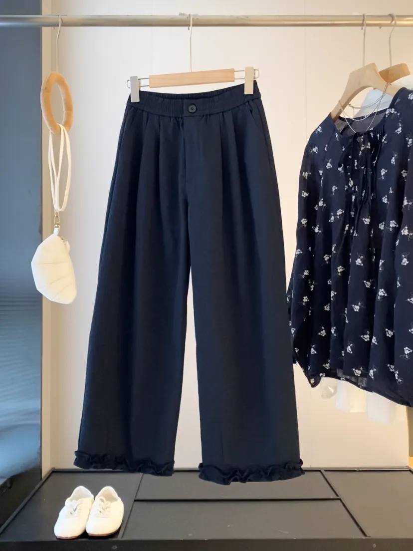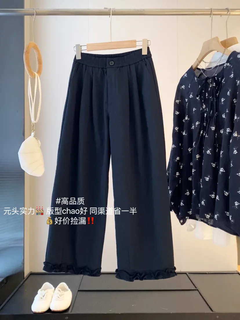 【淘宝】https://e.tb.cn/h.ipHv2xDOFAIGWXd?tk=57QO5gJxO5R CZ028 「IN BLUE 走岛国!通勤休闲风百搭褶皱肌理感高腰显瘦阔腿休闲裤女」