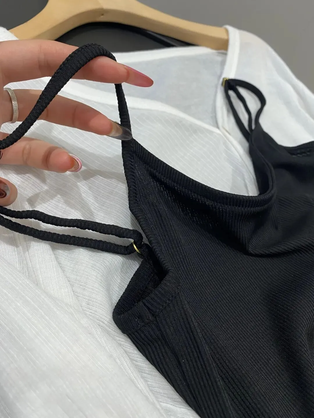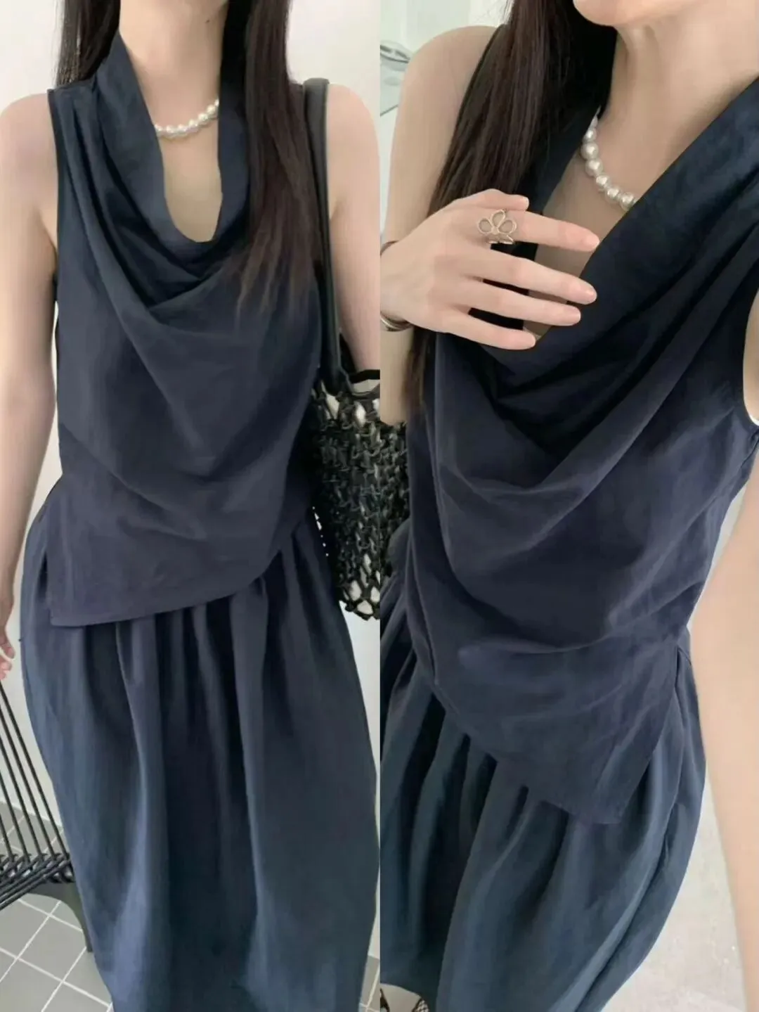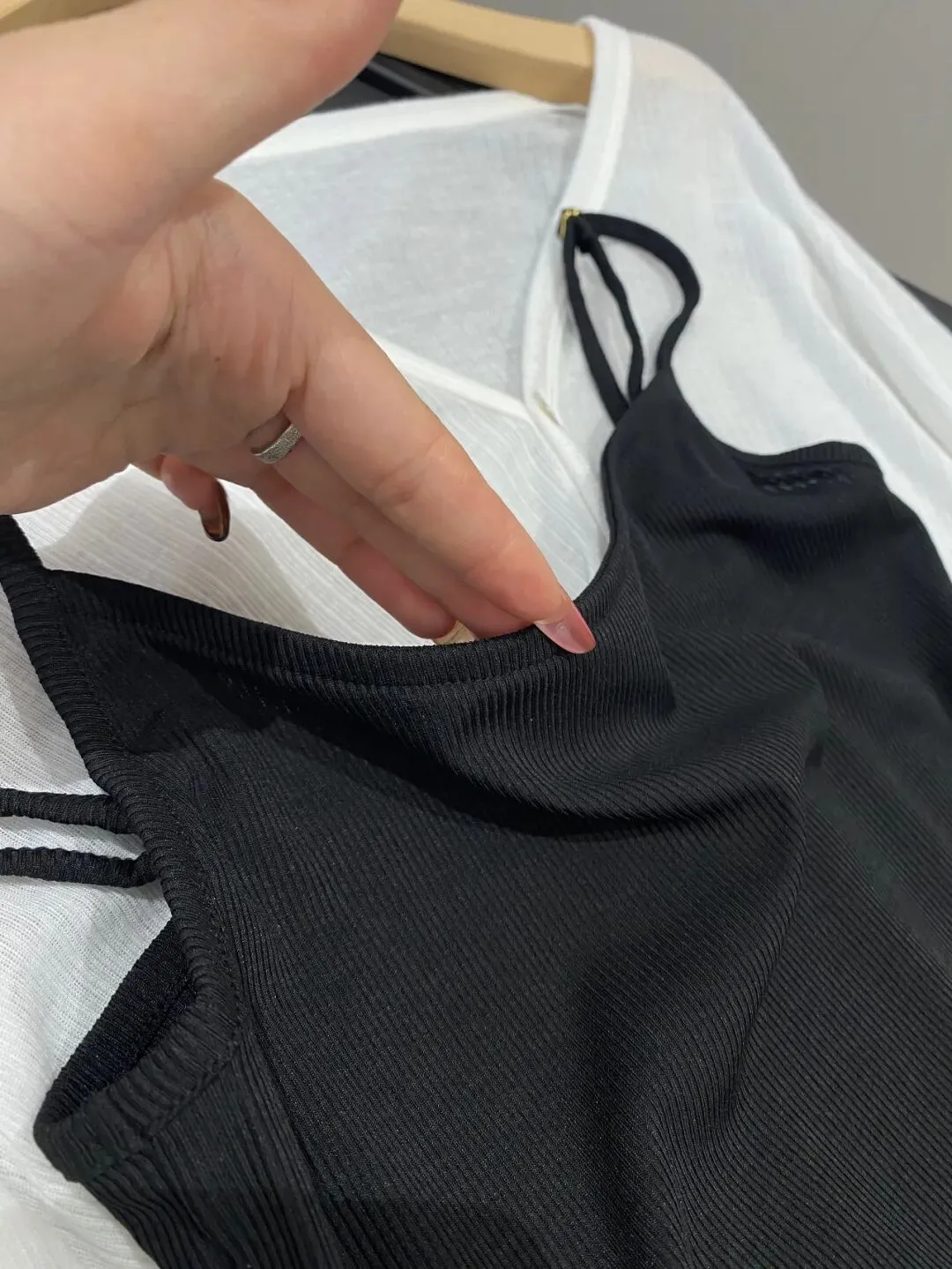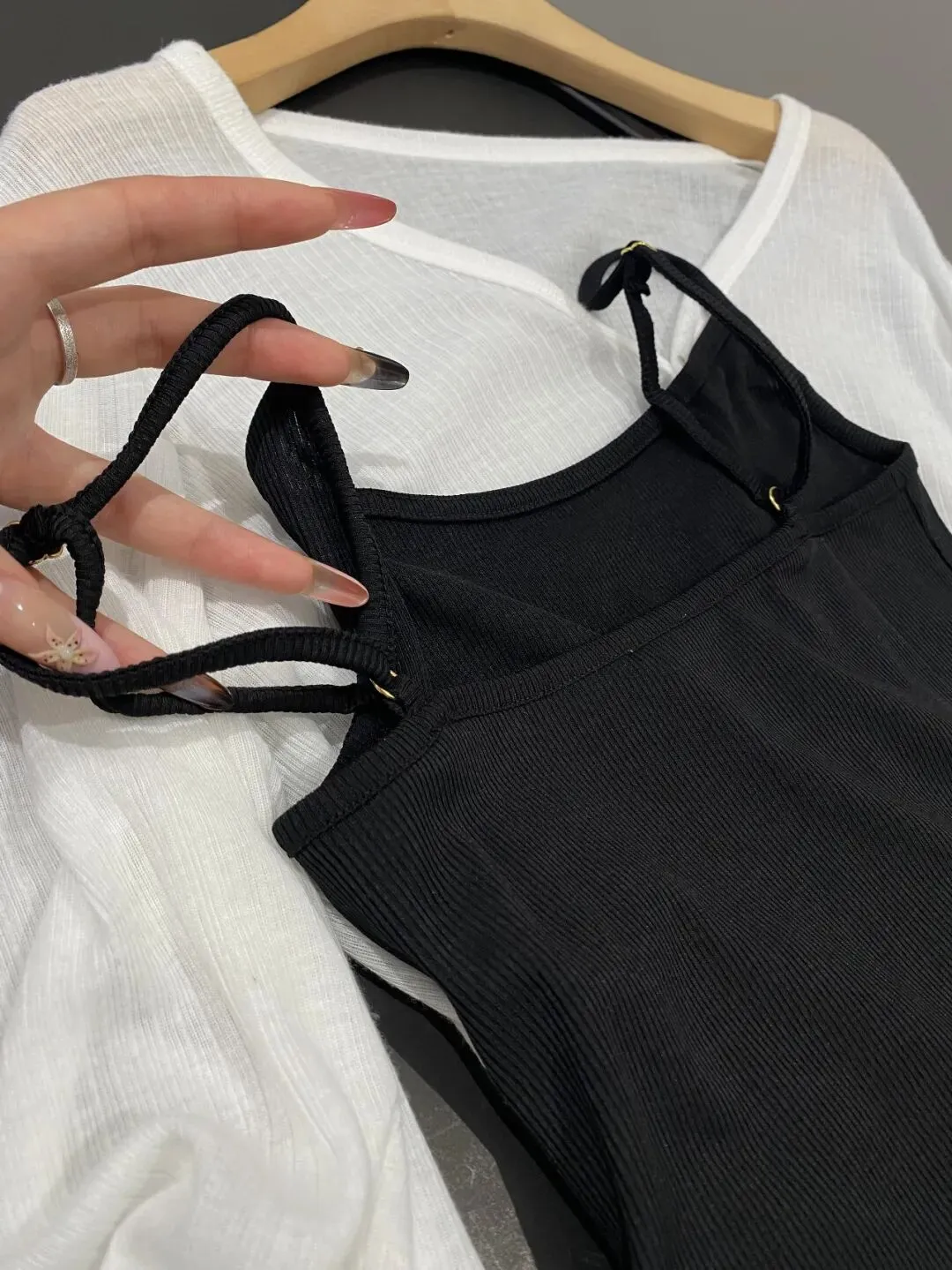 尤其是像吊带的黑色针织裙,上身真的是特别好看