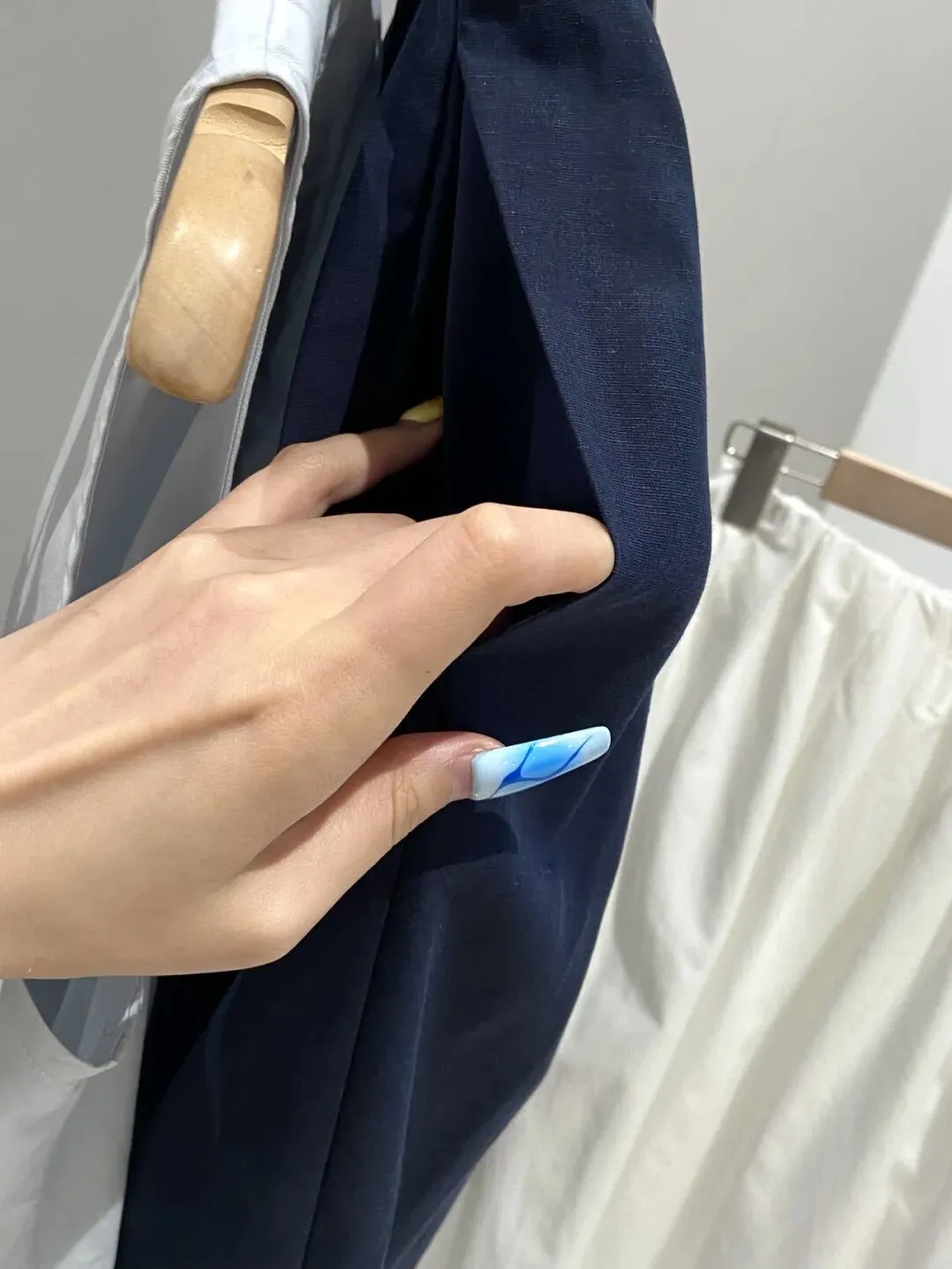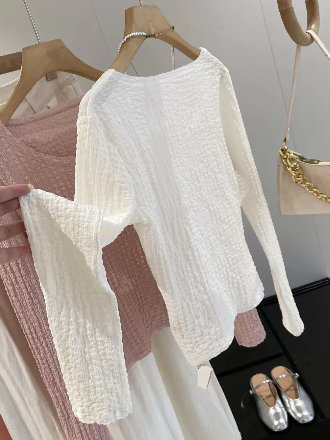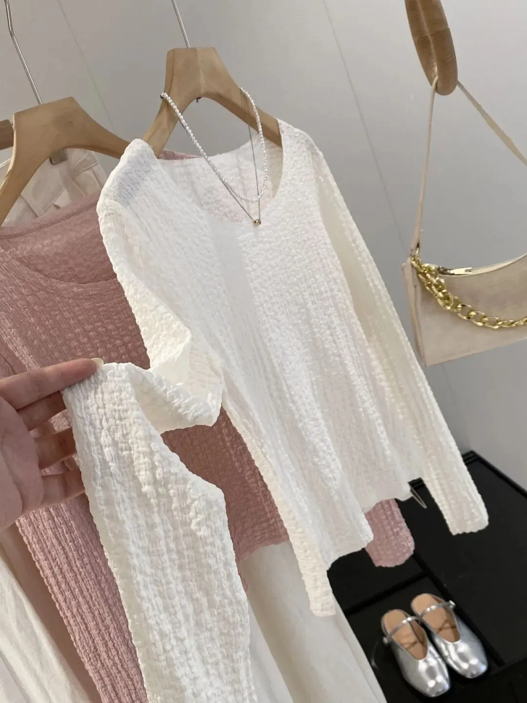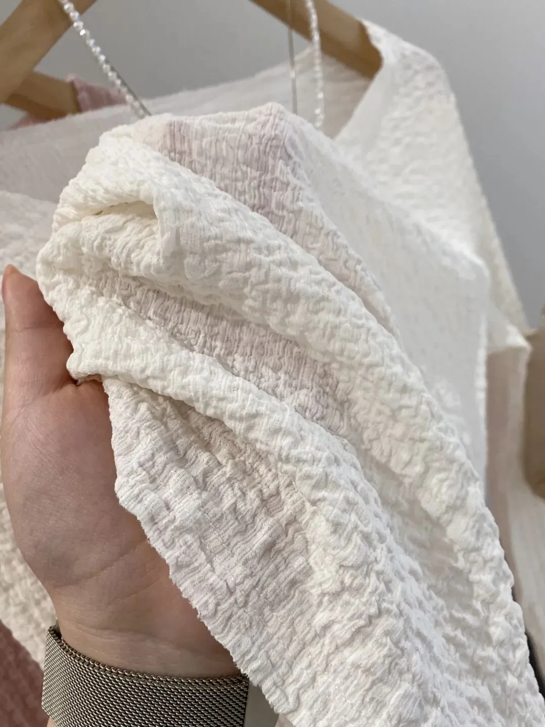 这款面料非常干爽又爽滑,自带高温熨烫过后肌理感