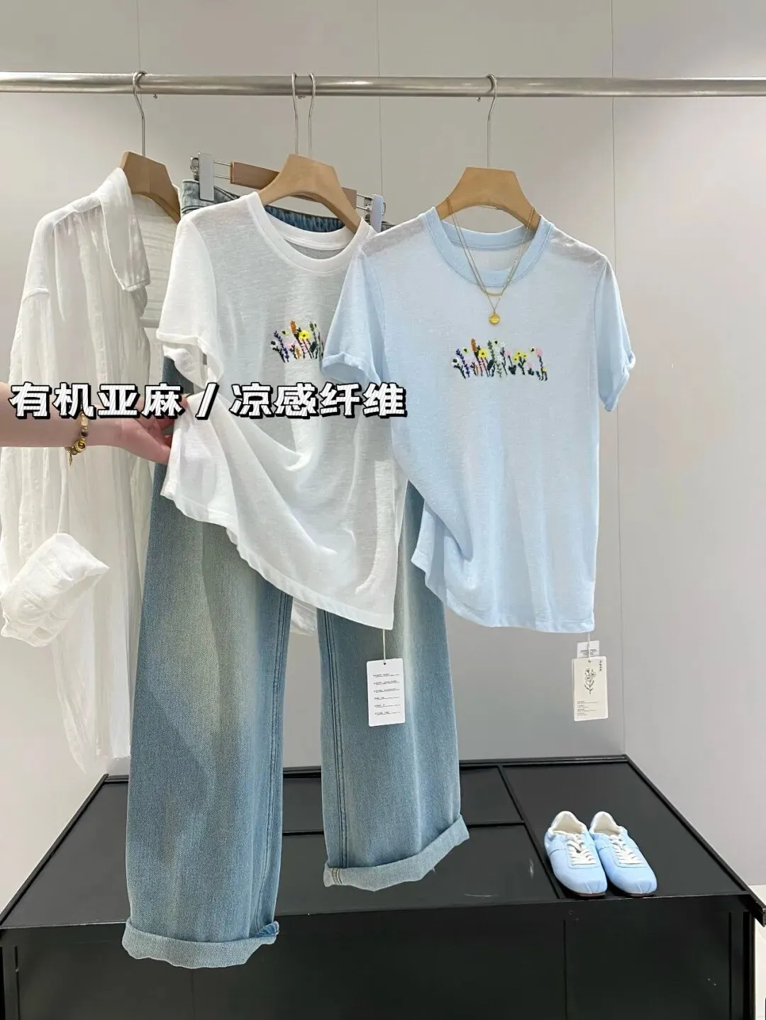 你们去搭配一些白牛牛仔裤包括小裙子都完全没问题