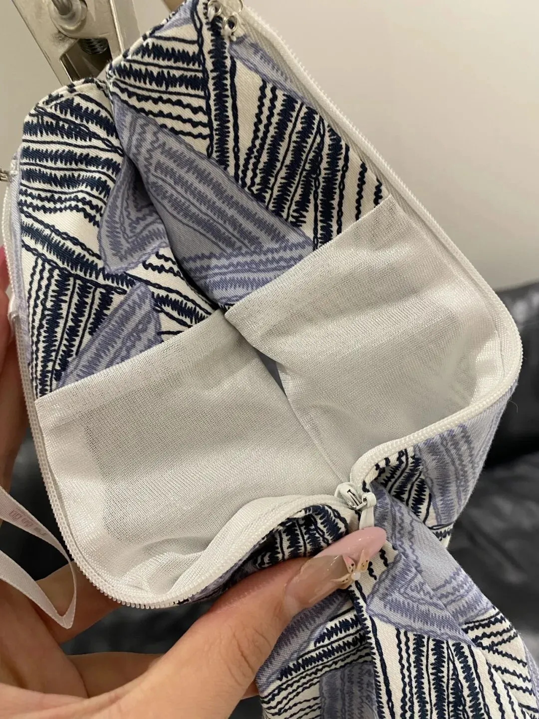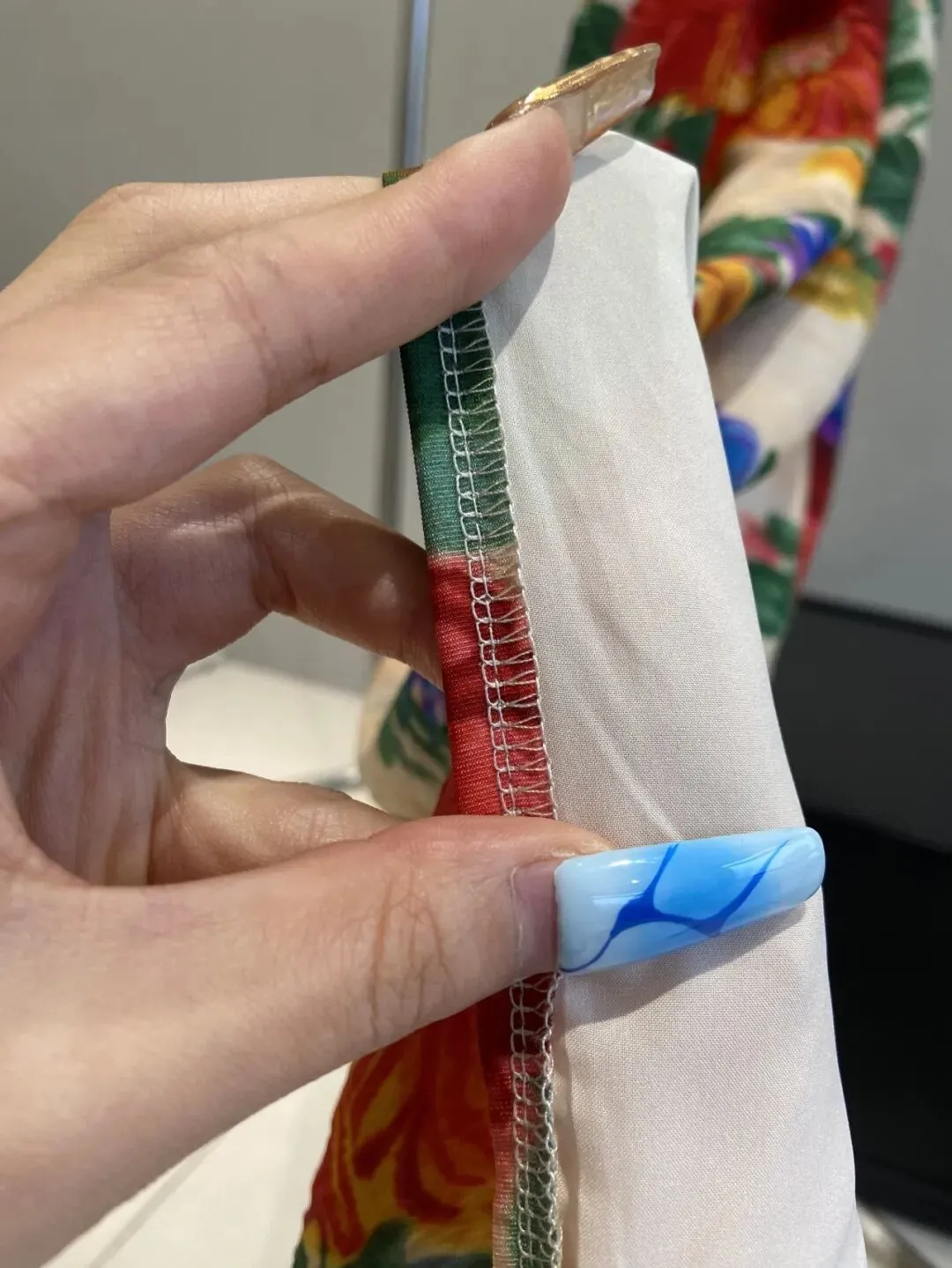这款是比较特别的双色面料,它里外两层都是不同的颜色