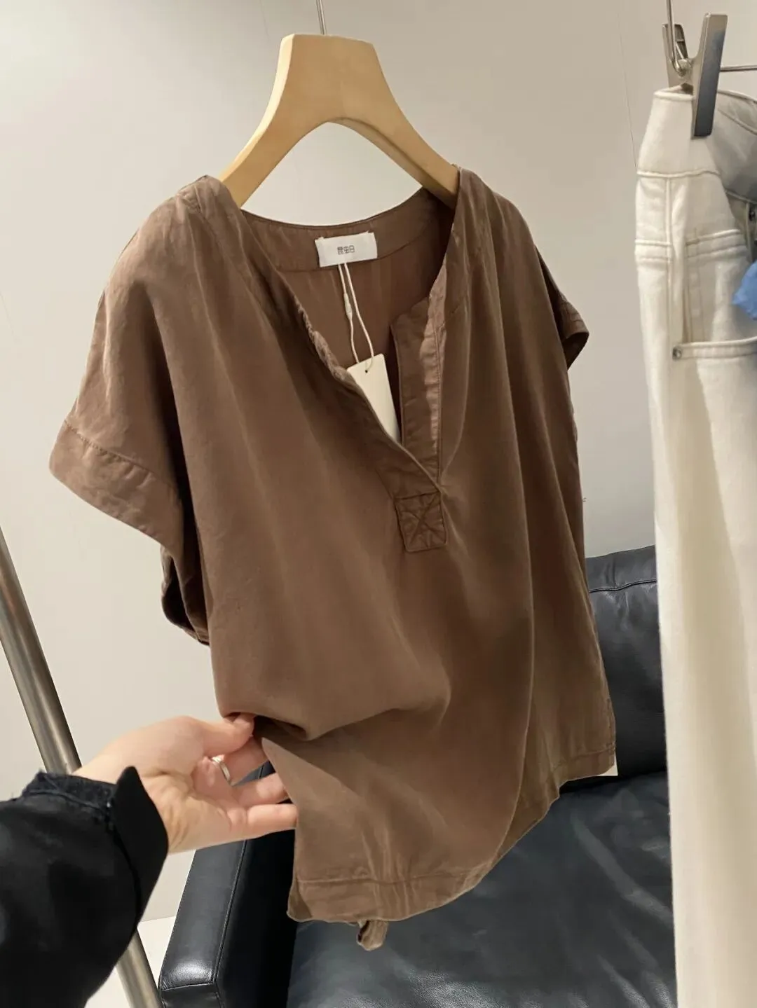 【淘宝】https://e.tb.cn/h.ipHEsTvXp6vmqv6?tk=mjfi5gJyRc9 tG-#22>lD 「IN BLUE 走老美!100莱赛尔春夏简约休闲通勤系带翻领短袖衬衫女」