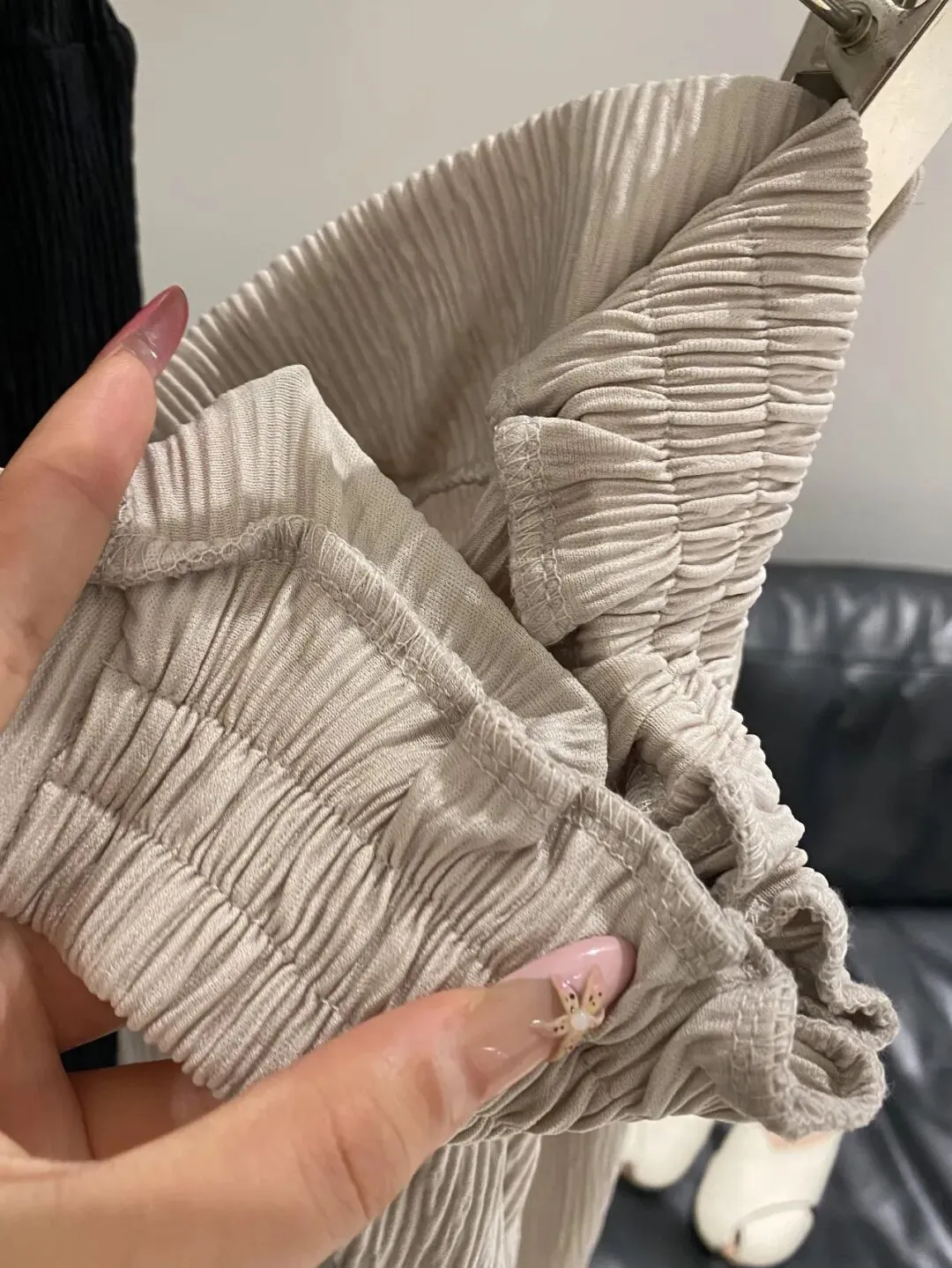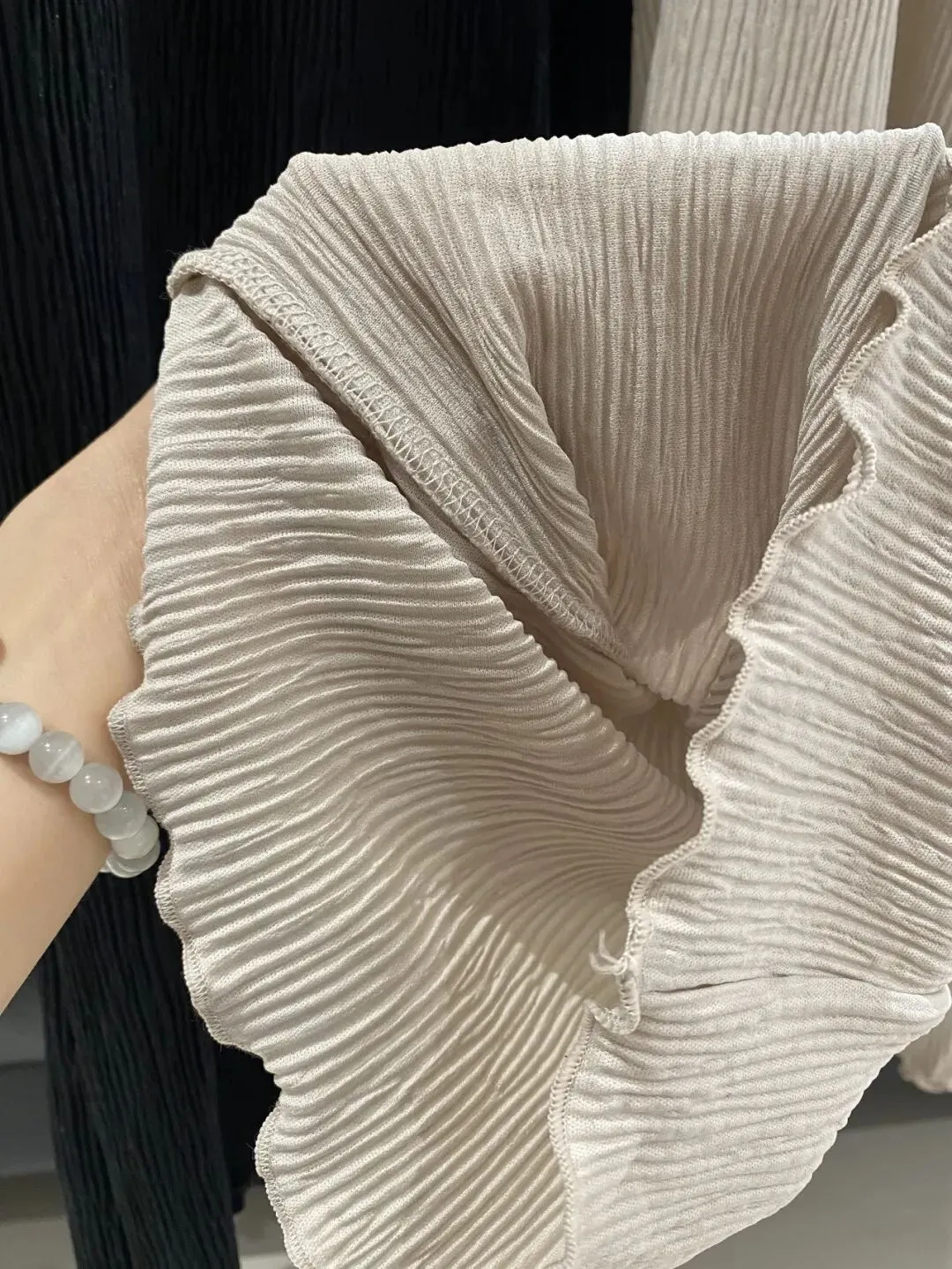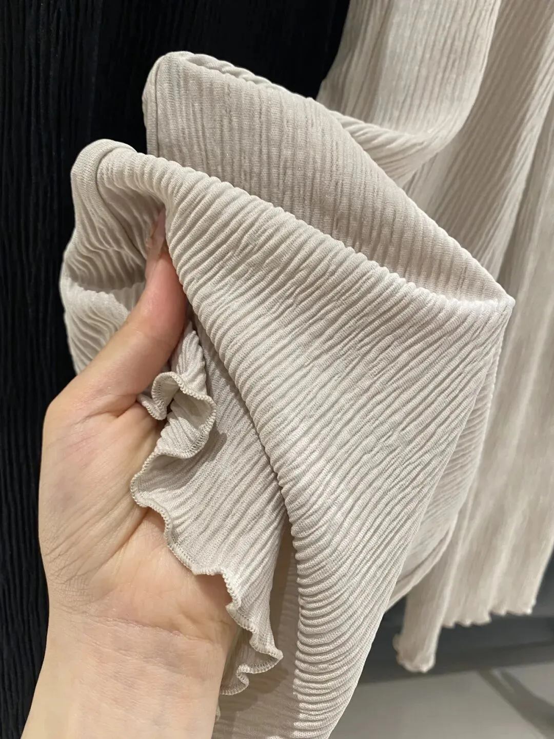 它是自带高温熨烫过后的褶皱肌理感