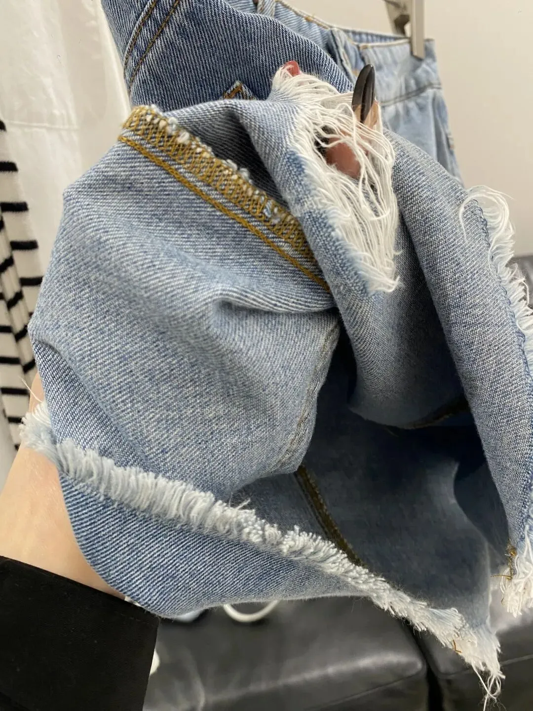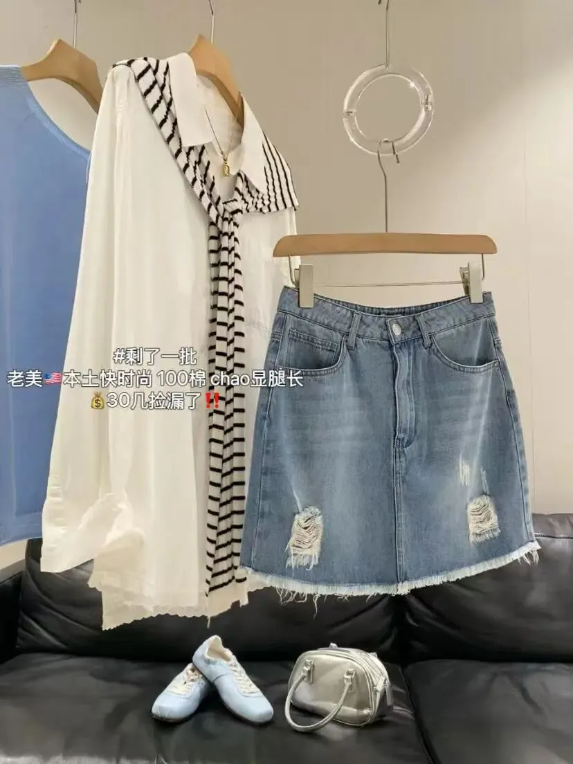 【淘宝】https://e.tb.cn/h.ipHEY6UpbBvR5JP?tk=5uNX5gJy2DU CZ321 「IN BLUE 走老美!春夏百搭复古显瘦做旧毛边破洞100棉牛仔短裙女」
