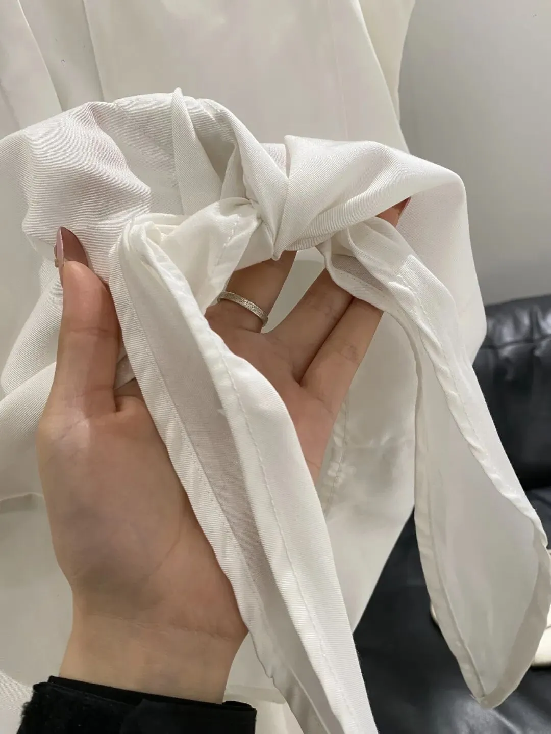下摆位置是系绳样式,能够使得腰间更加显瘦