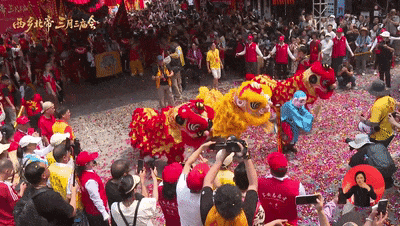 龙狮舞腾跃翻滚