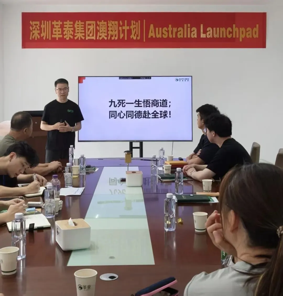 2026年4月8日-10日,为期三天的深圳革泰集团澳翔计划 Australia Launchpad 专项赋能集训在革泰大会议室圆满举行,澳大利亚总合作方 Etracking 公司聂陶锦先生携澳洲各州大区代表及业内专家组成的核心学员齐聚深圳参与本次集训。