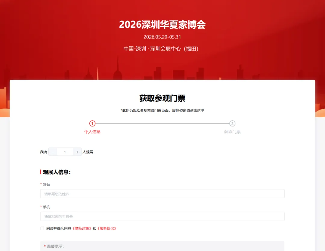 温馨提示:通过上方领票渠道,填写参观人信息,提前预约门票。